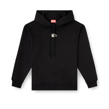 Hoodie da donna in loopback jersey di colore nero, realizzato con una percentuale di cotone biologico. Dalla vestibilità relaxed, questa felpa è decorata sul davanti dall’iconico Oval D: il logo color argento cromato è realizzato con una tecnica di stampa a iniezione, creando l’aspetto di una placca in metallo.