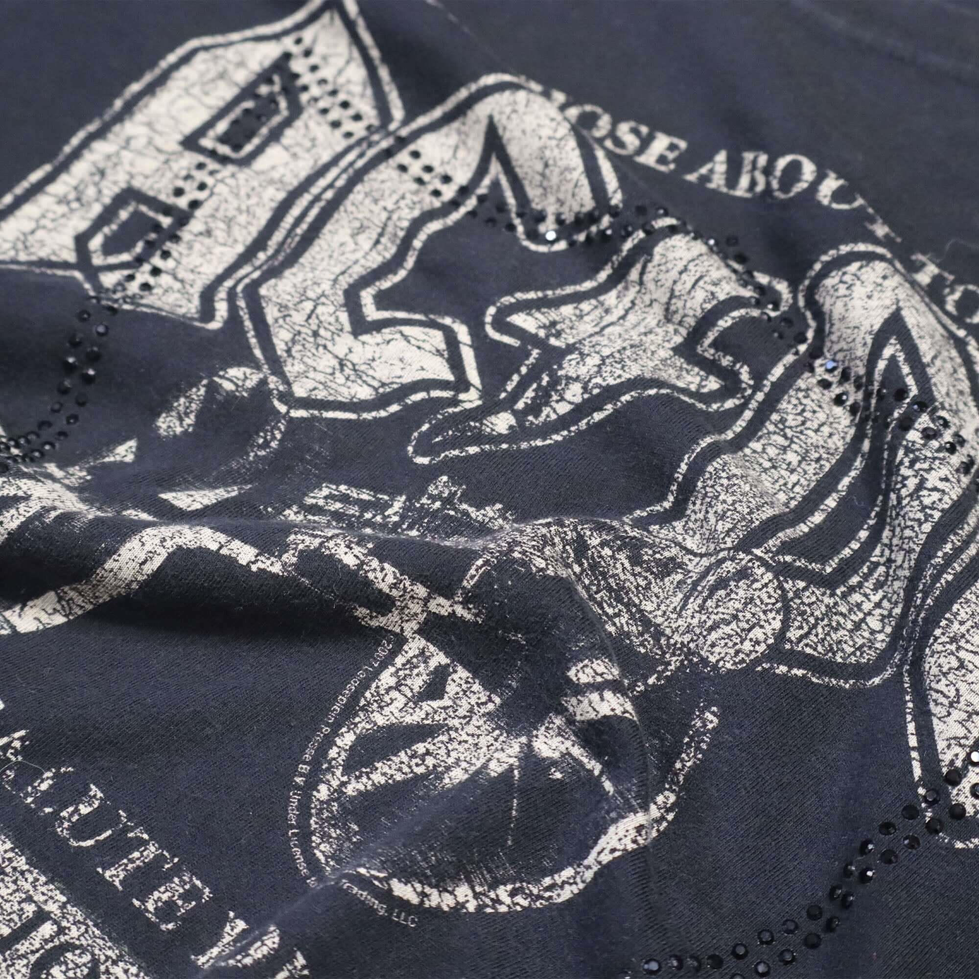 ONE OF A KIND VINTAGE T-SHIRT WITH ORIGINAL AC/DC PRINT, REWORKED WITH BLACK STUDDED HTC LOGO ON THE FRONT. REGULAR FIT.