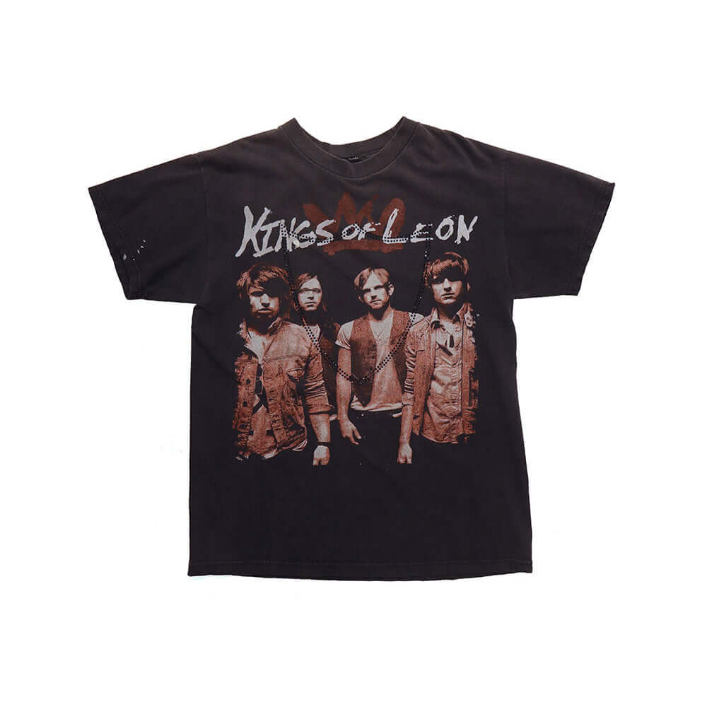 ONE OF A KIND VINTAGE T-SHIRT WITH ORIGINAL KINGS OF LEON PRINT, REWORKED WITH BLACK STUDDED HTC LOGO ON THE FRONT. REGULAR FIT.