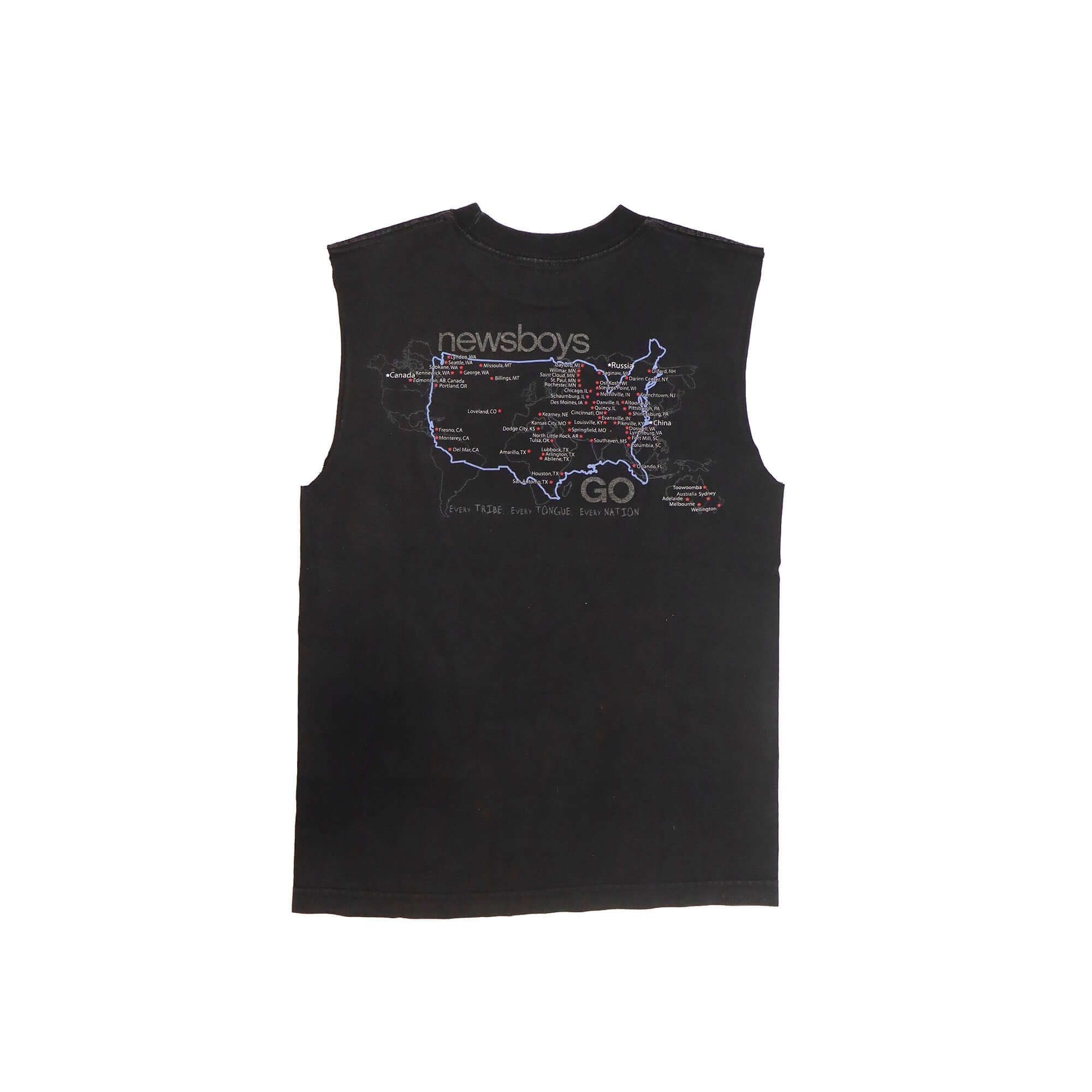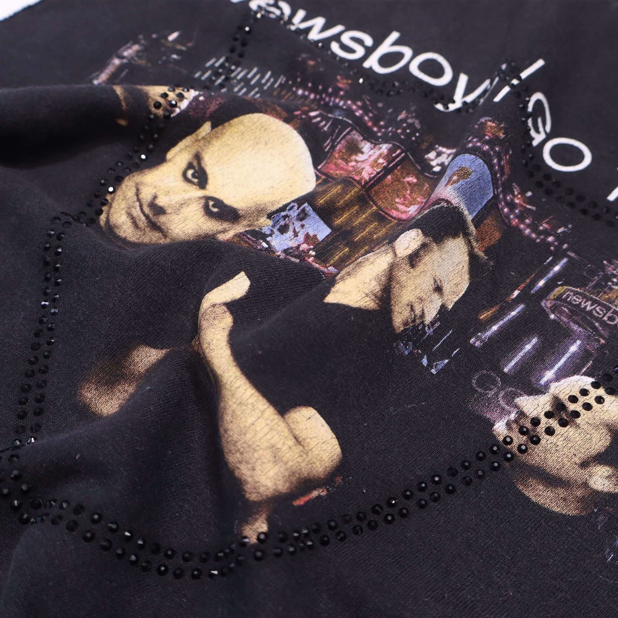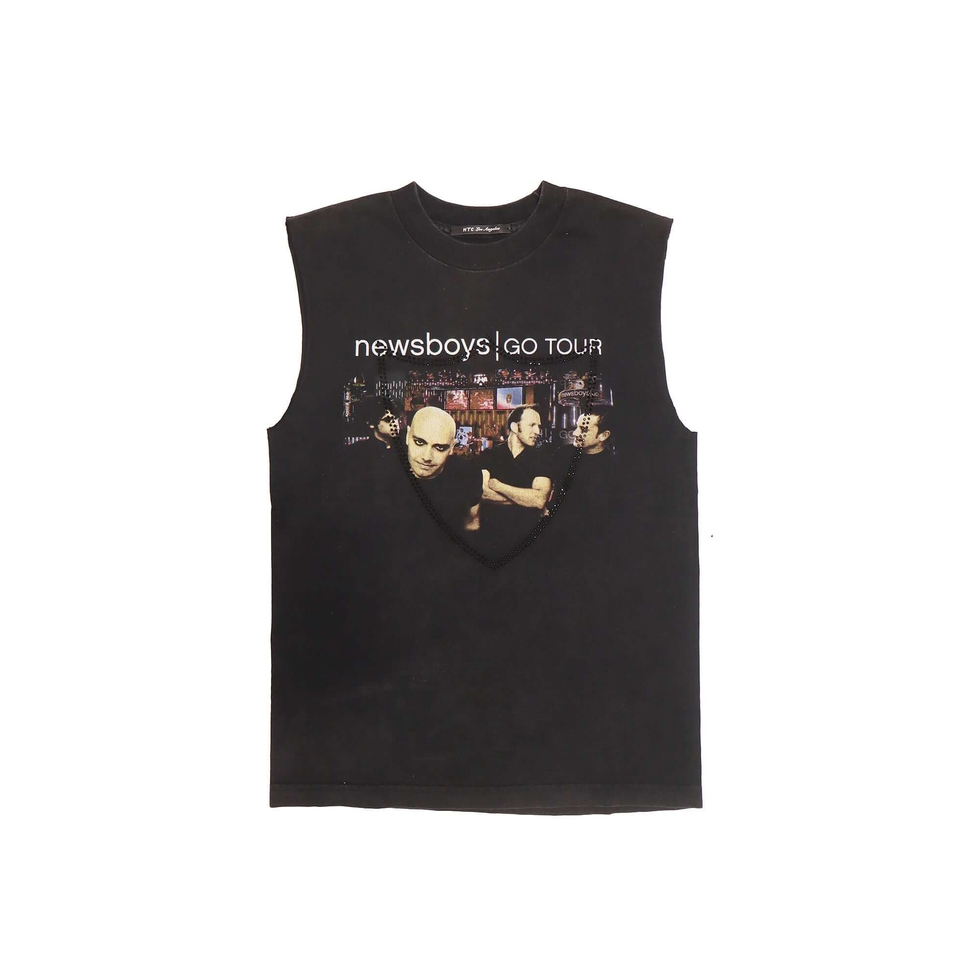 ONE OF A KIND VINTAGE T-SHIRT WITH ORIGINAL NEWSBOYS PRINT, REWORKED WITH BLACK STUDDED HTC LOGO ON THE FRONT. REGULAR FIT.