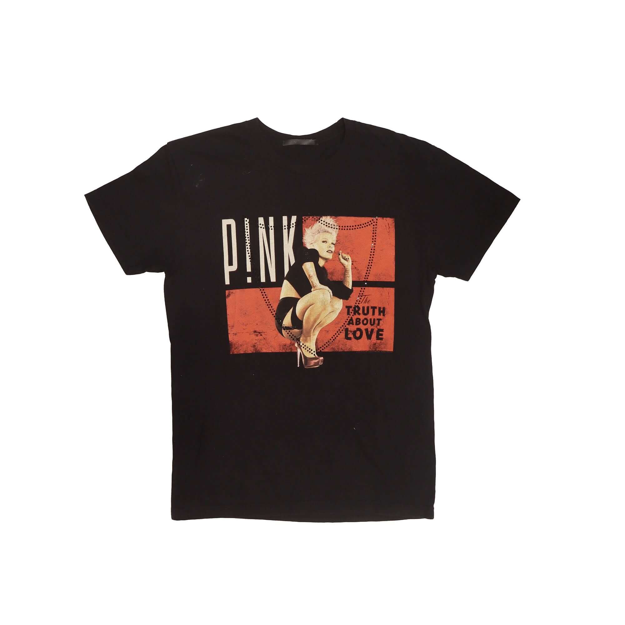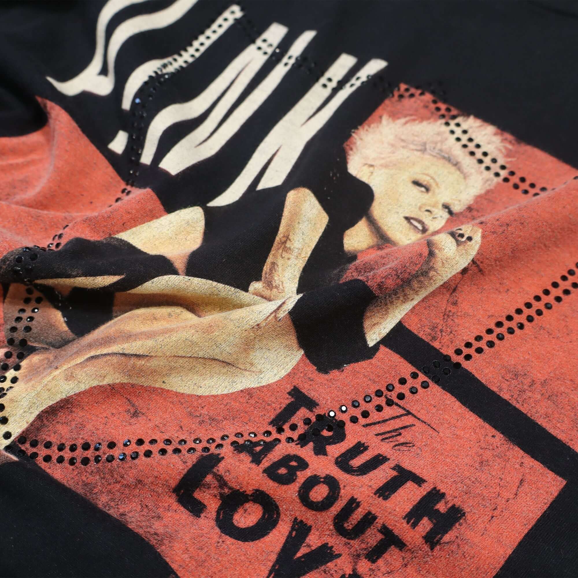 ONE OF A KIND VINTAGE T-SHIRT WITH ORIGINAL PINK PRINT, REWORKED WITH BLACK STUDDED HTC LOGO ON THE FRONT. REGULAR FIT.