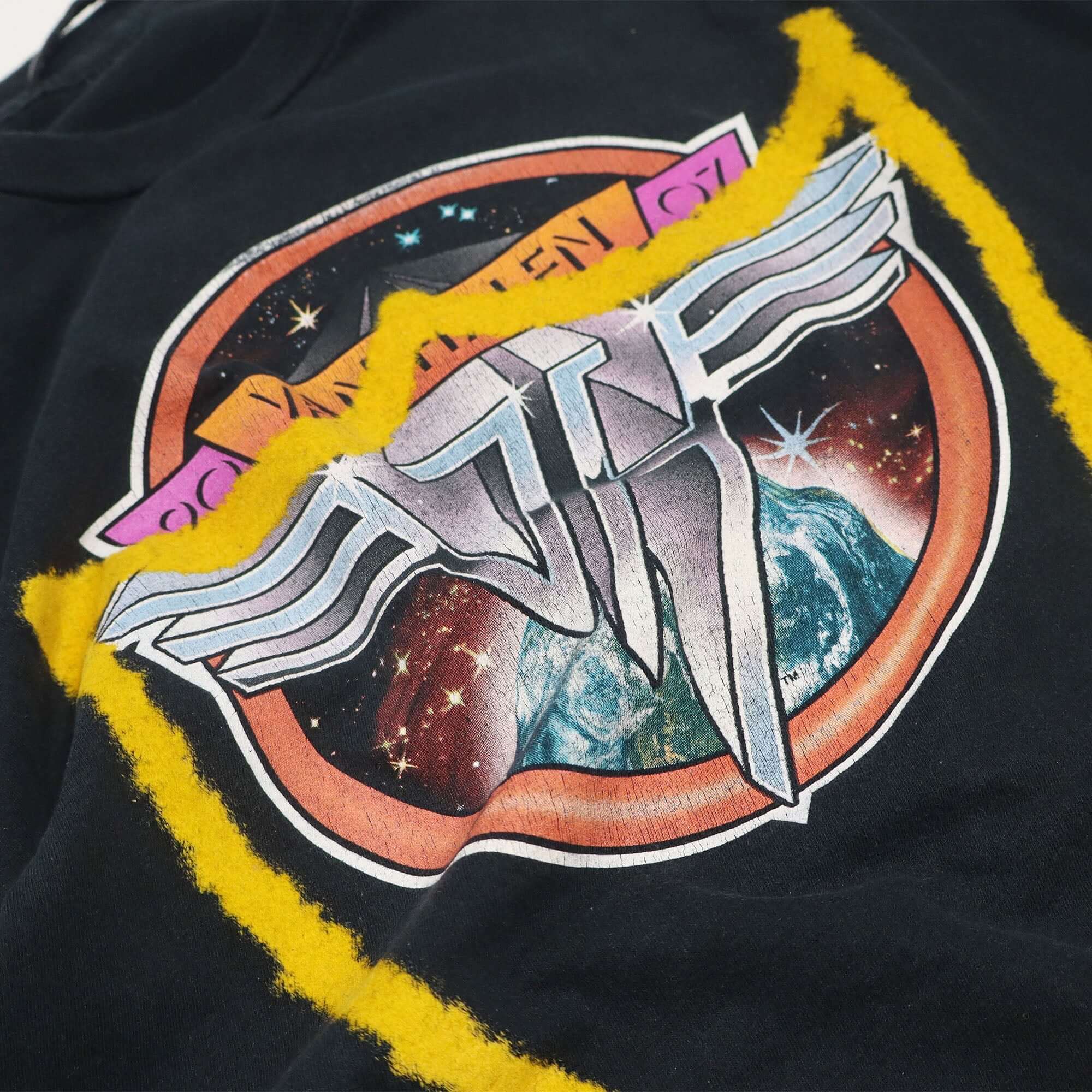 ONE OF A KIND VINTAGE T-SHIRT WITH ORIGINAL VAN HALEN PRINT, REWORKED WITH YELLOW HTC LOGO ON THE FRONT. SLIM FIT.