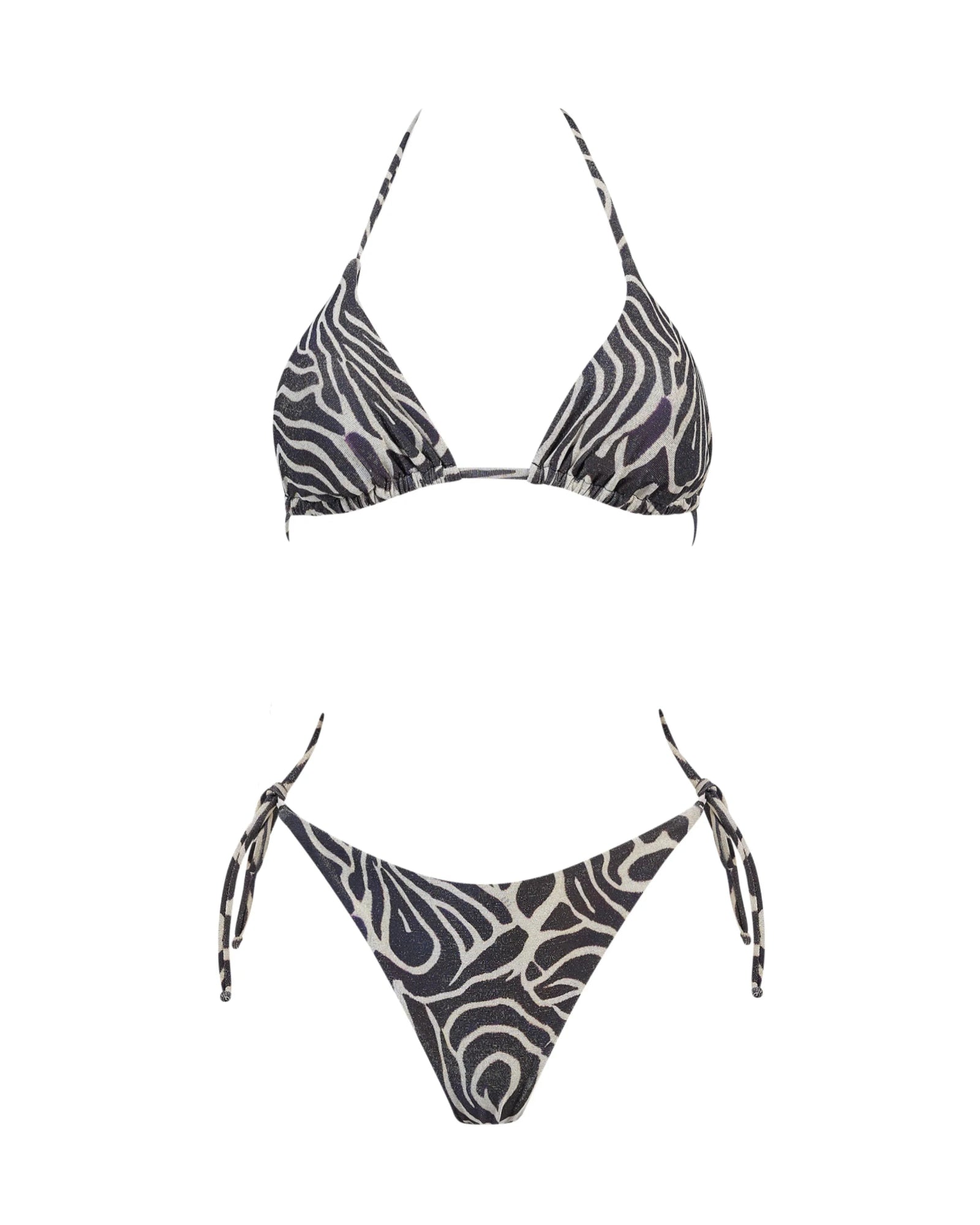 Kate è il bikini must-have dell’estate. Combina un top a triangolo con laccetti regolabili e coppe estraibili e uno slip, anch’esso con laccetti regolabili laterali e una sgambatura a brasiliana.