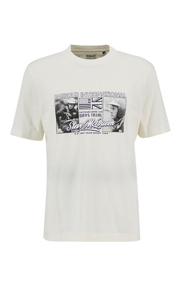 In 1964, Steve McQueen and the rest of the US team, stopped by in London to buy their Barbour International suits end route to compete in the 1964 International Six Day Trials in East Germany. Paying homage to this iconic competition, the B.Intl Multon Graphic T-Shirt features a Steve McQueen graphic from the ISDT.