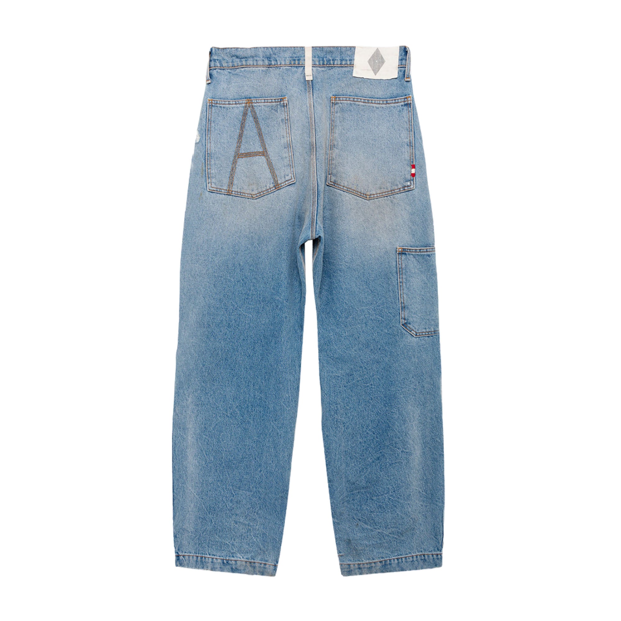 • Super knee Carpenter in denim con lavaggio chiaro e leggero effetto used.