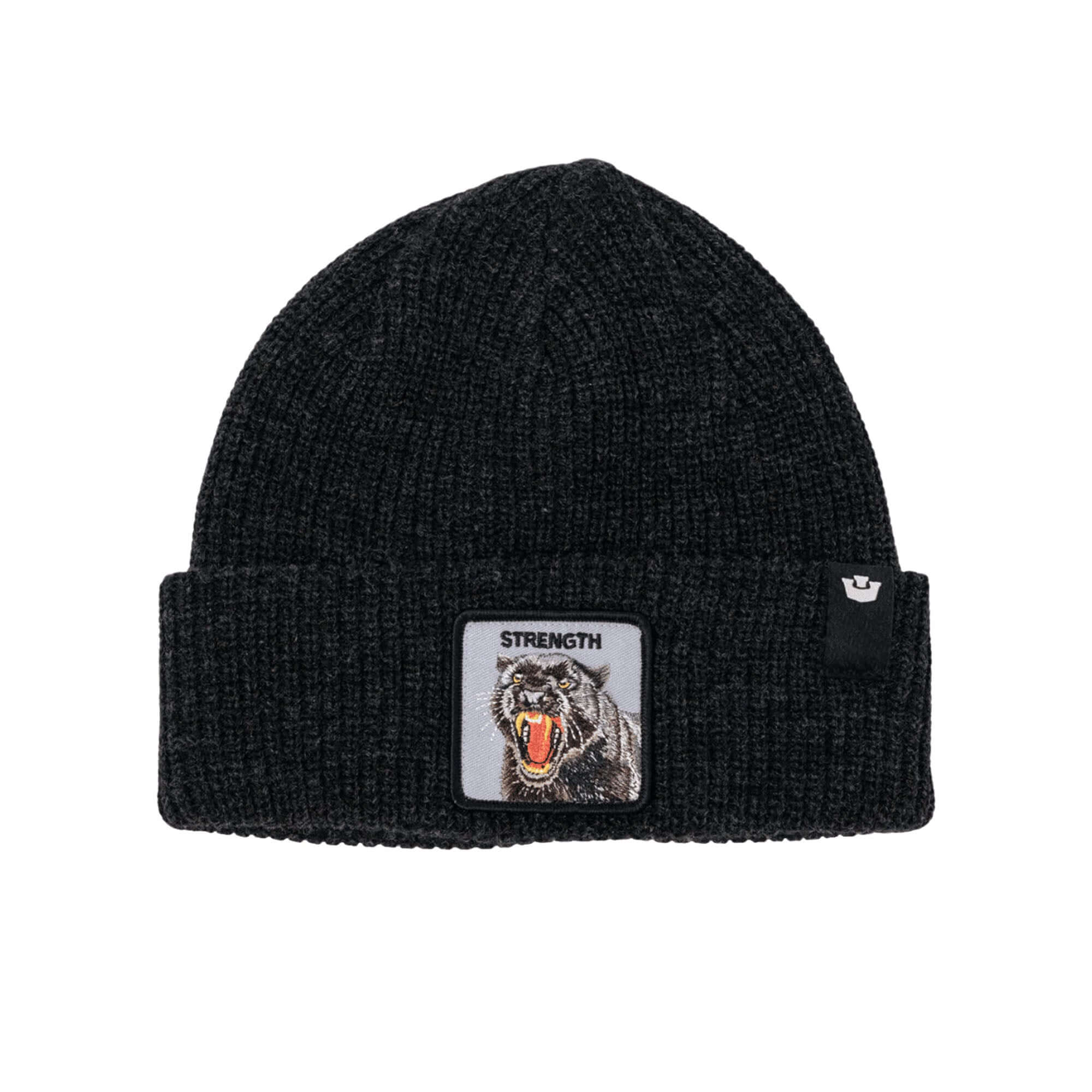 Maglia nera, realizzata come un'armatura, impreziosita da una toppa con una pantera ruggente. Calore robusto e potenza pura cucita all'interno: questo berretto è resistente per giorni.
