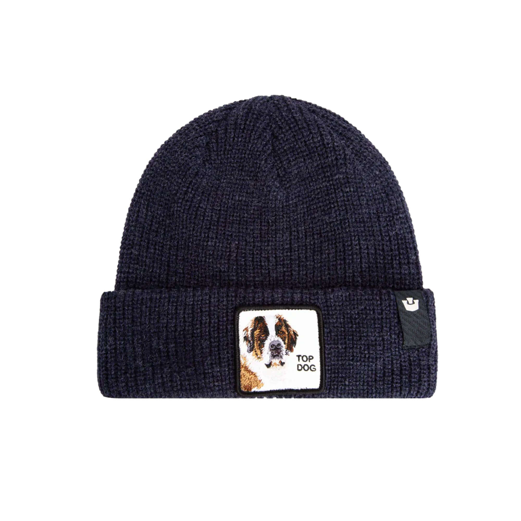 Energia da testa grande, letteralmente. Il berretto Top Beanie è realizzato in maglia blu navy con una toppa raffigurante un San Bernardo, perfetto per il caldo. Fedele, oversize e impossibile da ignorare: questo è il capo indiscusso dell'inverno. Comfort e calore per chi ama lo stile in formato extra large