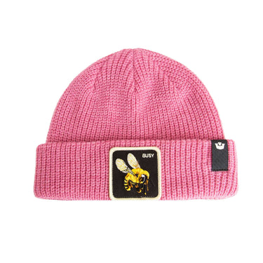 Maglia rosa acceso con toppa a forma di ape che ronza per richiamare la frenesia. Caldo, audace e impossibile da ignorare: questo berretto ti protegge la testa mentre la tua lista di cose da fare continua ad allungarsi.