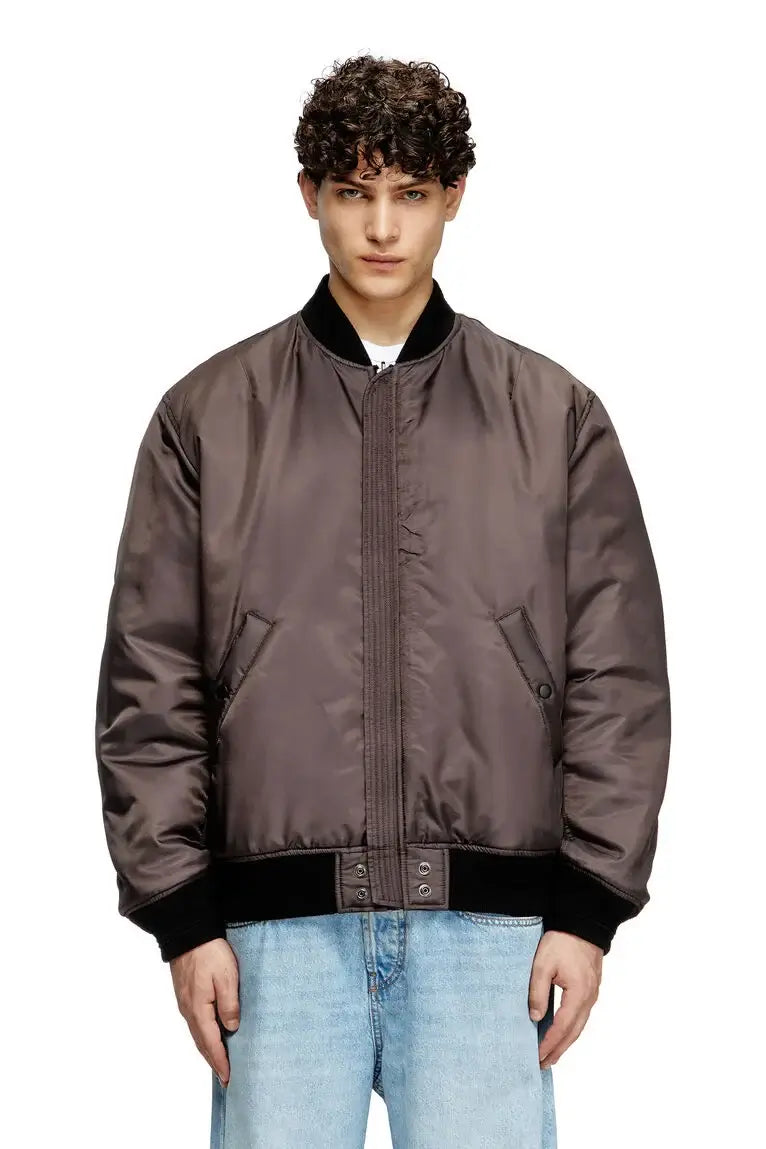 Giacca bomber da uomo in tessuto tecnico con fibre di nylon riciclate certificate. Leggermente imbottita, è decorata con il contorno del logo Oval D ricamato in tono sul retro e cuciture leggermente arricciate lungo le maniche.