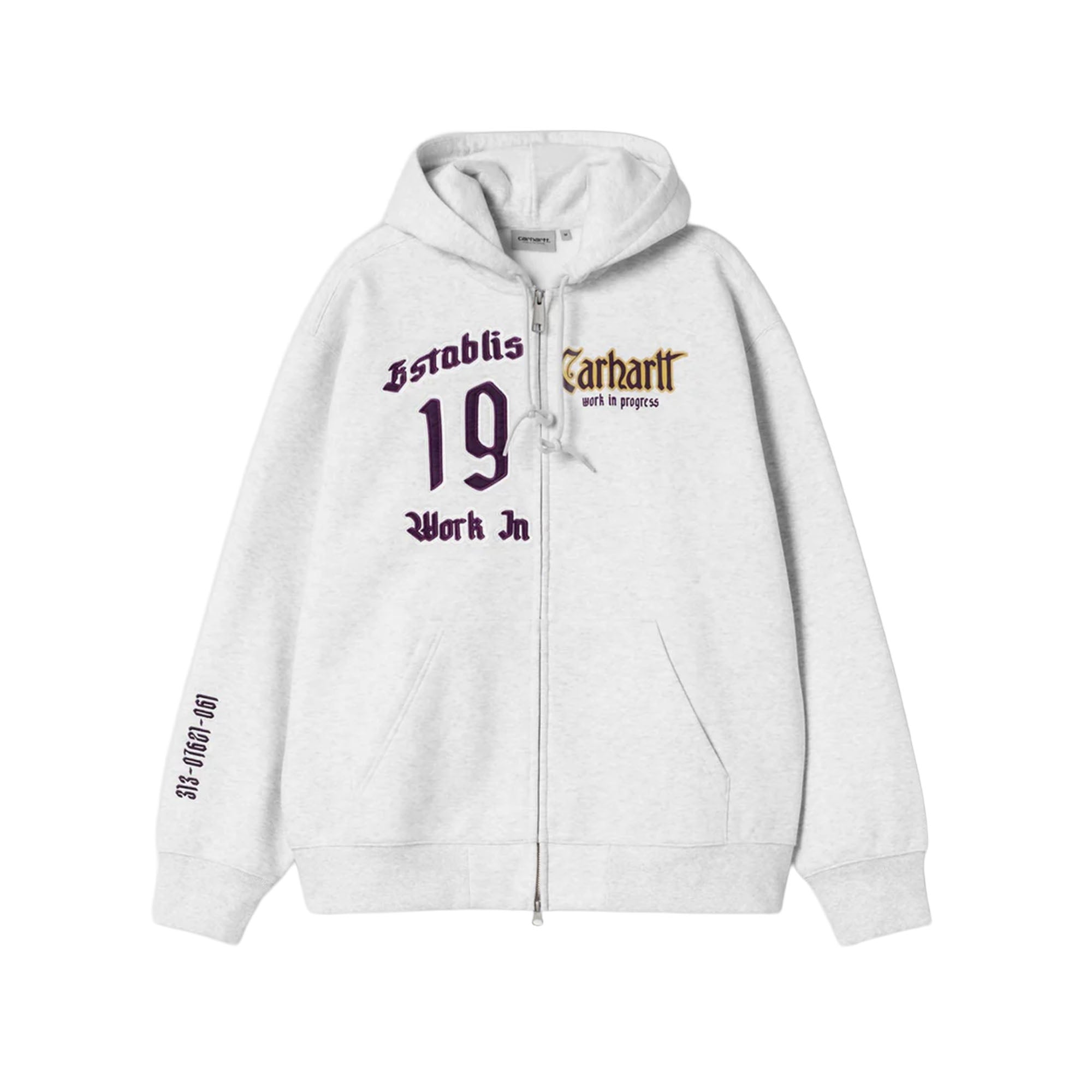 Carhartt WIP Dual Grey in pile cardato di cotone e poliestere, con tasche a marsupio sul davanti e polsini e orlo a coste.