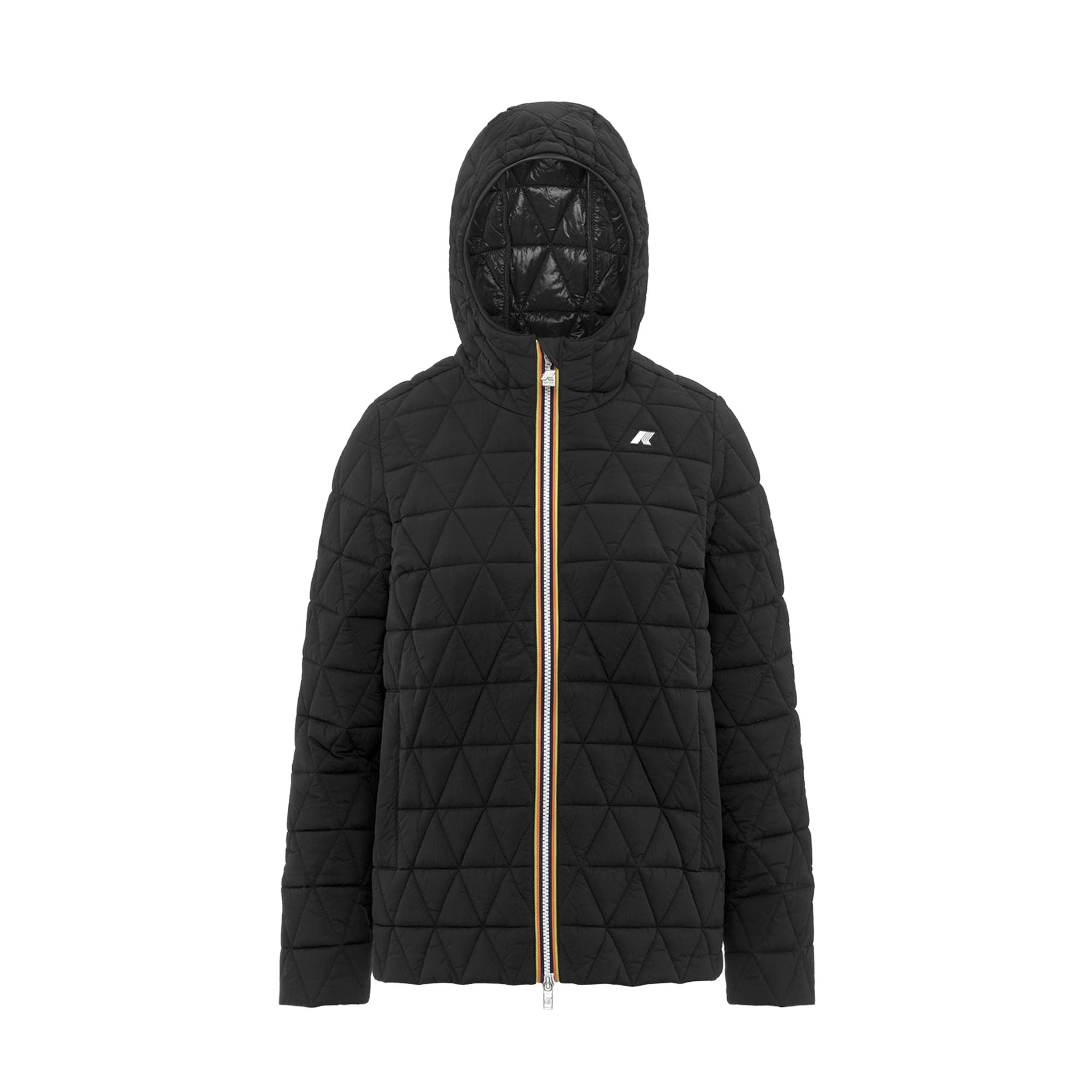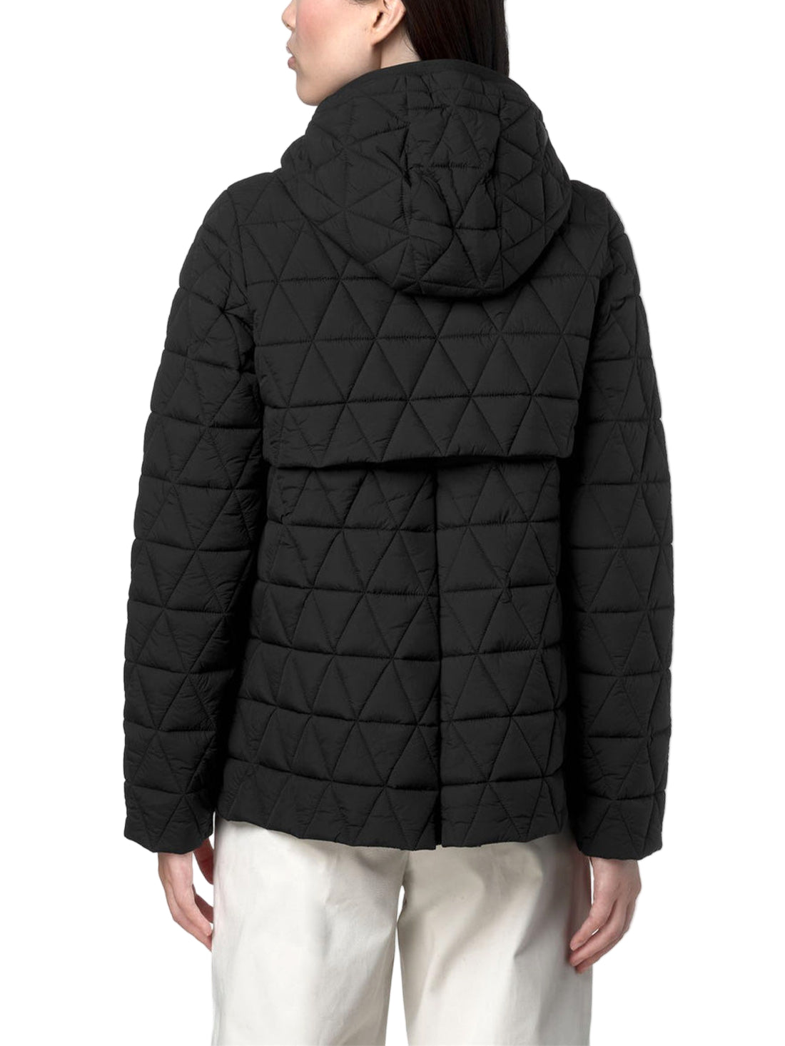 Giacca corta trapuntata a triangoli in nylon idrorepellente ed antivento, con fondo svasato. Ideale per la mezza stagione, garante di protezione per calore leggero, finitura soft & dry touch ed imbottitura ecologica leggera in Primaloft, per una protezione dalla pioggia moderata.