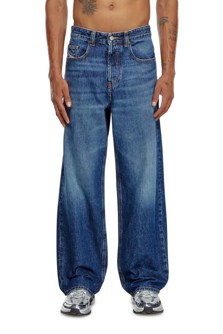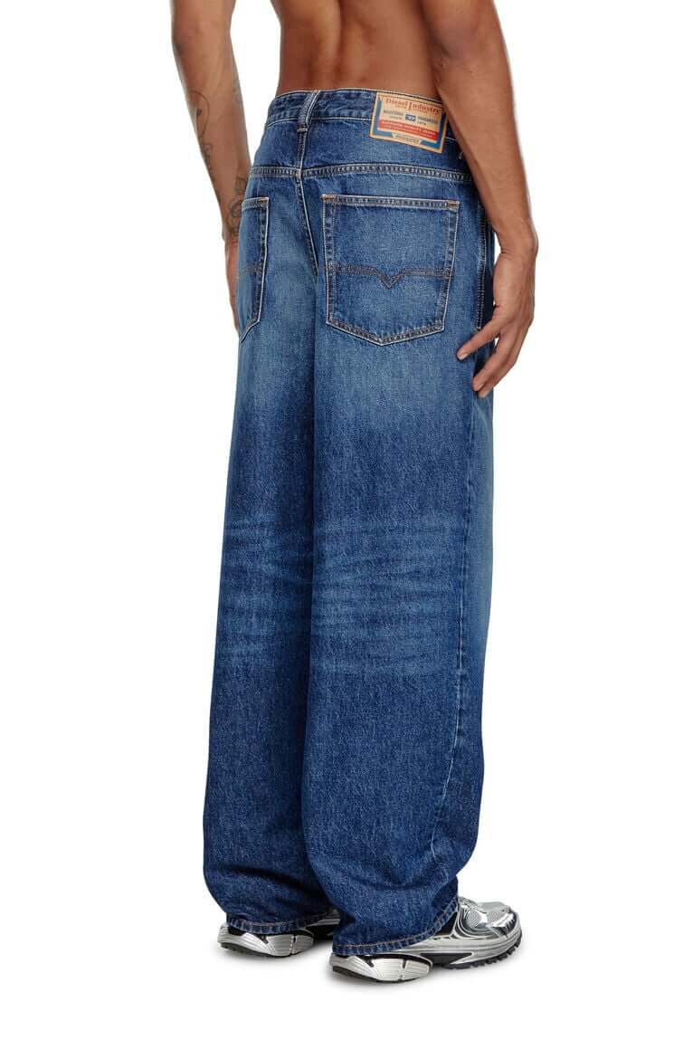 Relaxed fit con vita bassa, cavallo basso e gamba wide. La silhouette lunga e ampia lascia spazio per uno stile disinvolto. Chiusura con bottoni.