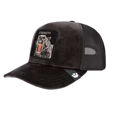 Cappello trucker della collezione Goorin Bros. Realizzato in velluto con applicazione.