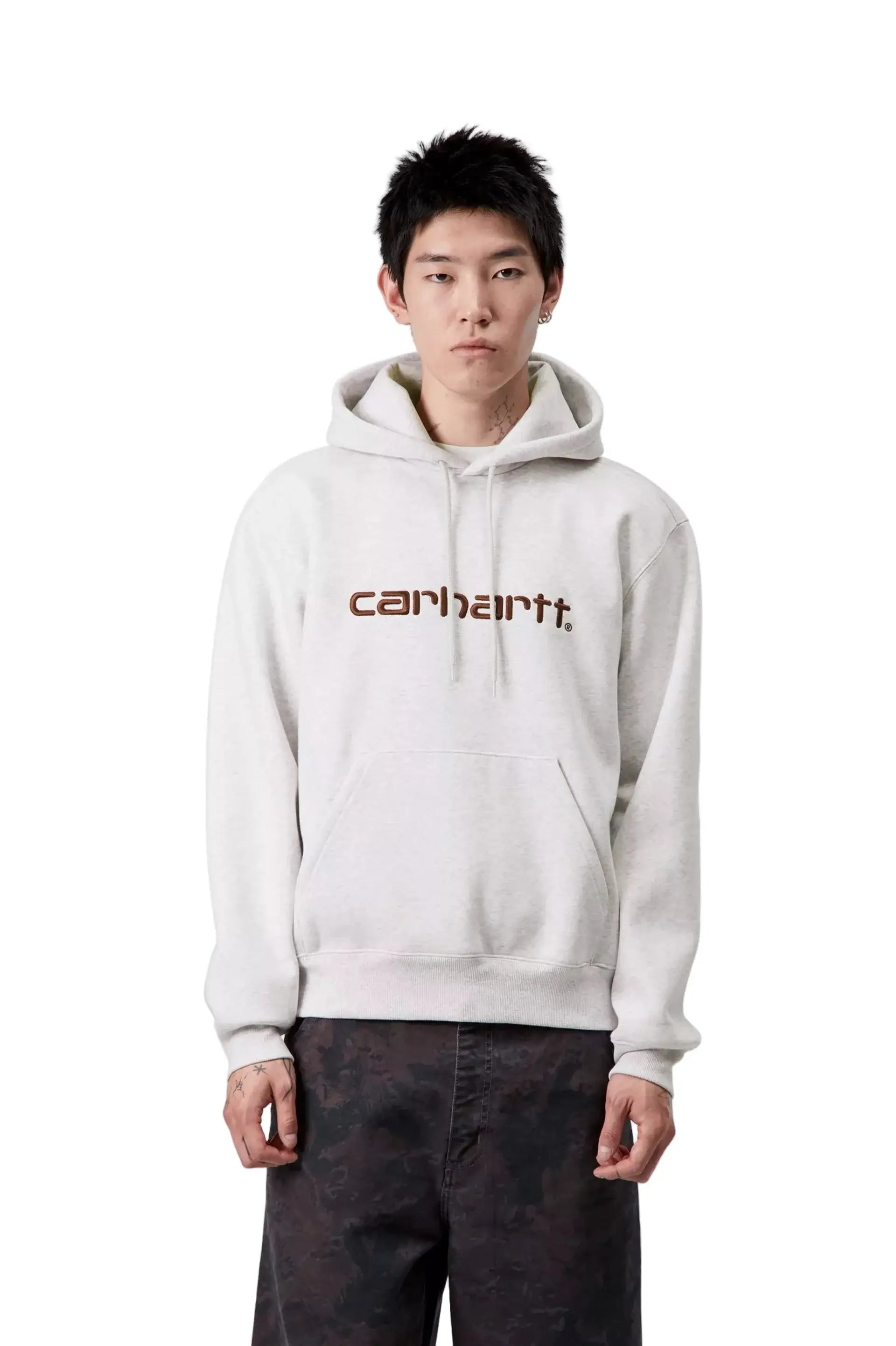 La felpa con cappuccio Carhartt è realizzata in jersey di policotone pesante e spazzolato, con una vestibilità comoda e un morbido retro simile al pile. Presenta inoltre una tasca a marsupio e orlo e polsini a coste. Il logo Script ricamato è presente sul petto.