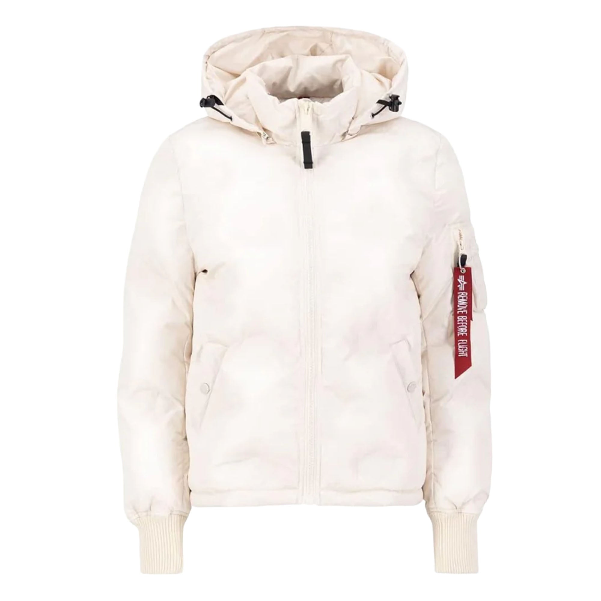This is the Hooded Logo Puffer winter jacket for women from Alpha Industries. This regular fit jacket has a drawstring hood and with the lined material, no winter is too cold for you. The RBF tag and the Alpha logo on the sleeve pocket let you represent Alpha Industries perfectly.