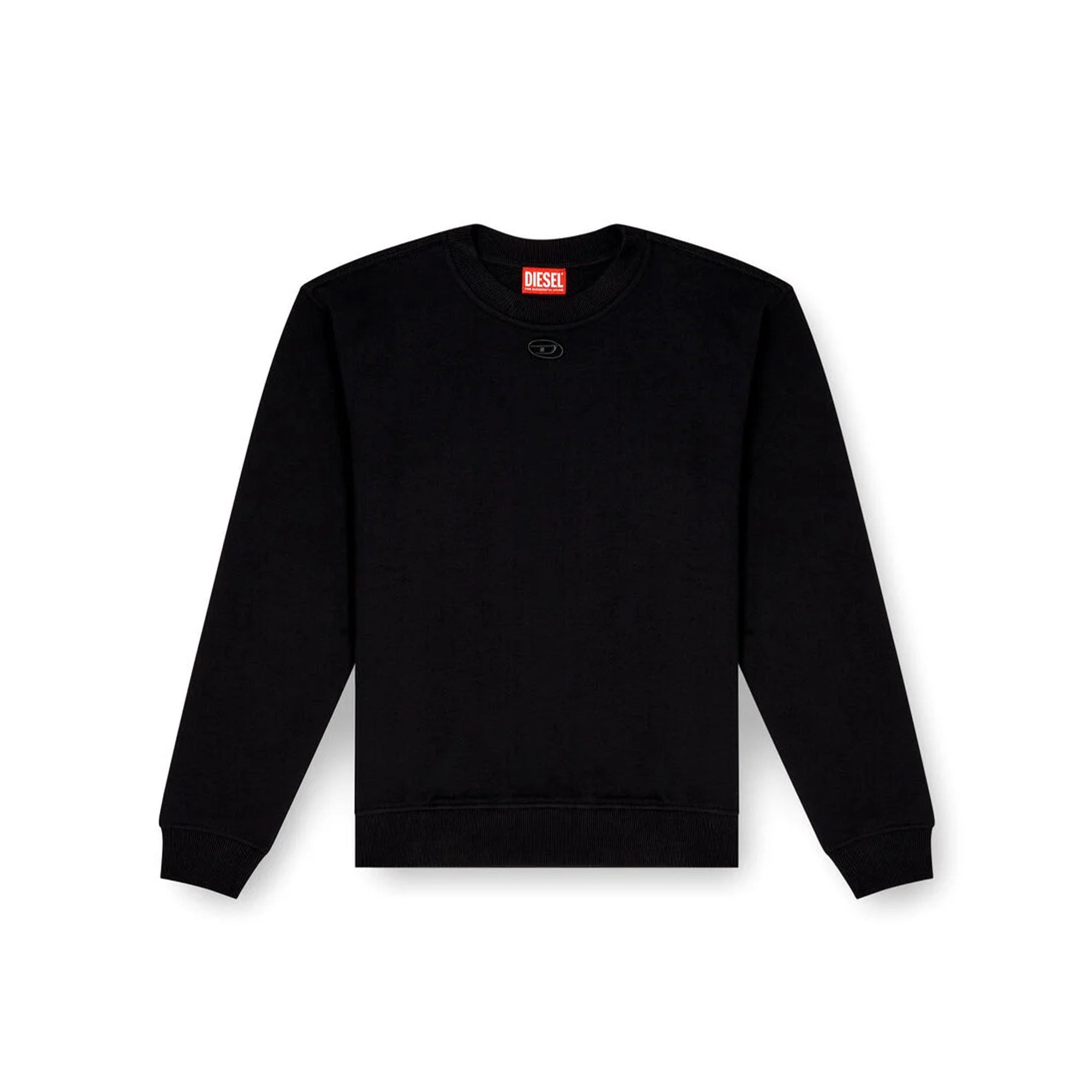 Felpa regular fit con girocollo e maniche lunghe, realizzata in felpa non garzata con una percentuale di cotone biologico. Il design è completato da collo, polsini e fondo in tessuto a costine elasticizzato, impreziosito da un ricamo Oval D tagliato al laser appena sotto il collo.