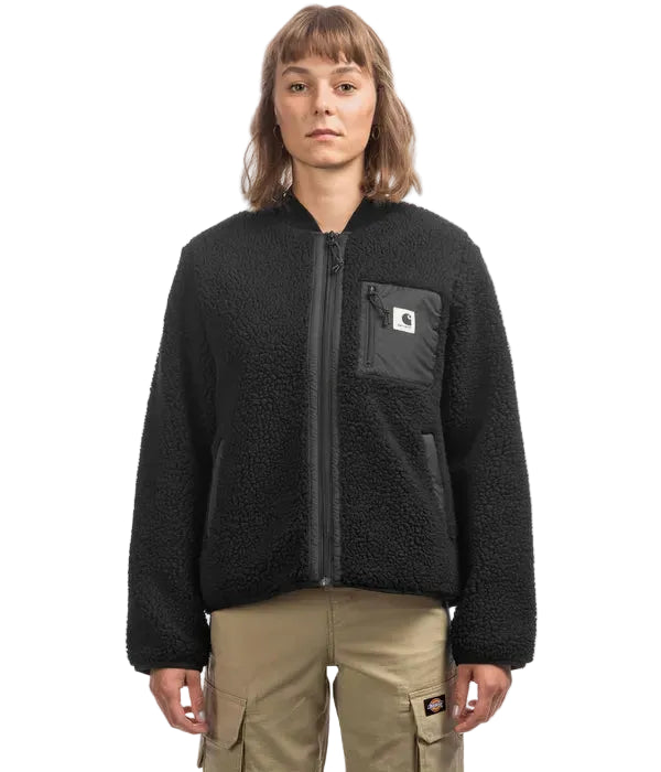 The W' Janet Liner is made of 10.03-ounce heavy fleece and features contrasting nylon taffeta details and a single chest pocket with Carhartt WIP label. It features nylon taffeta lining and a ribbed knit collar.