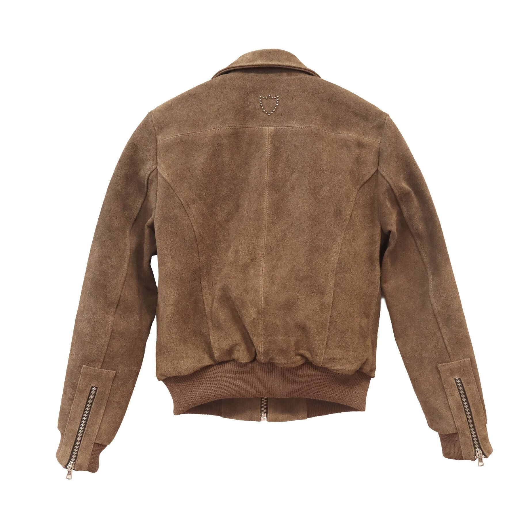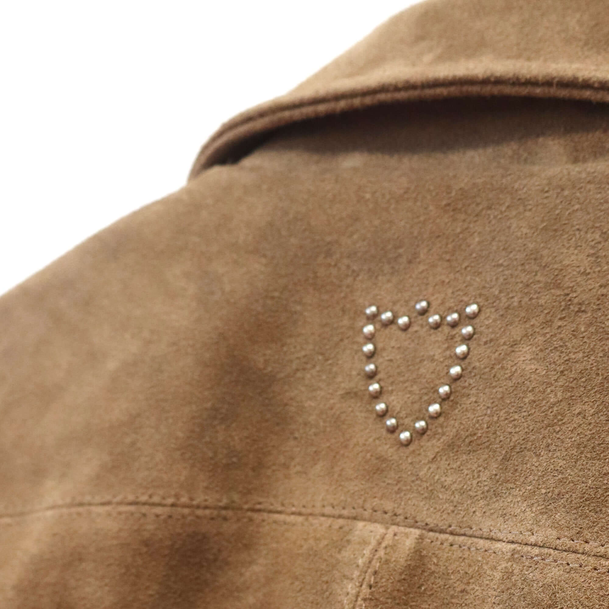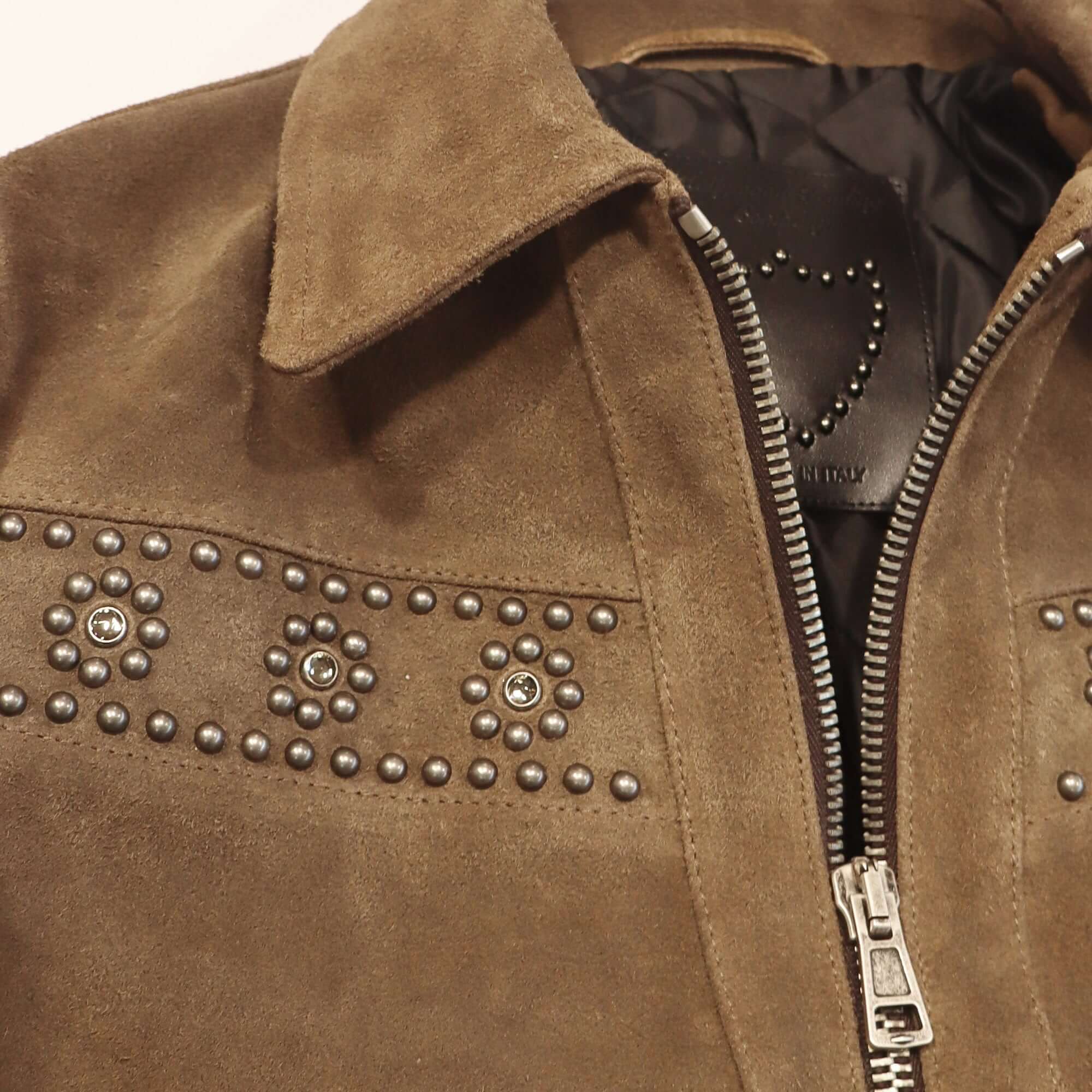 Cognac Suede Woman Jacket featuring floral studded details on the front.