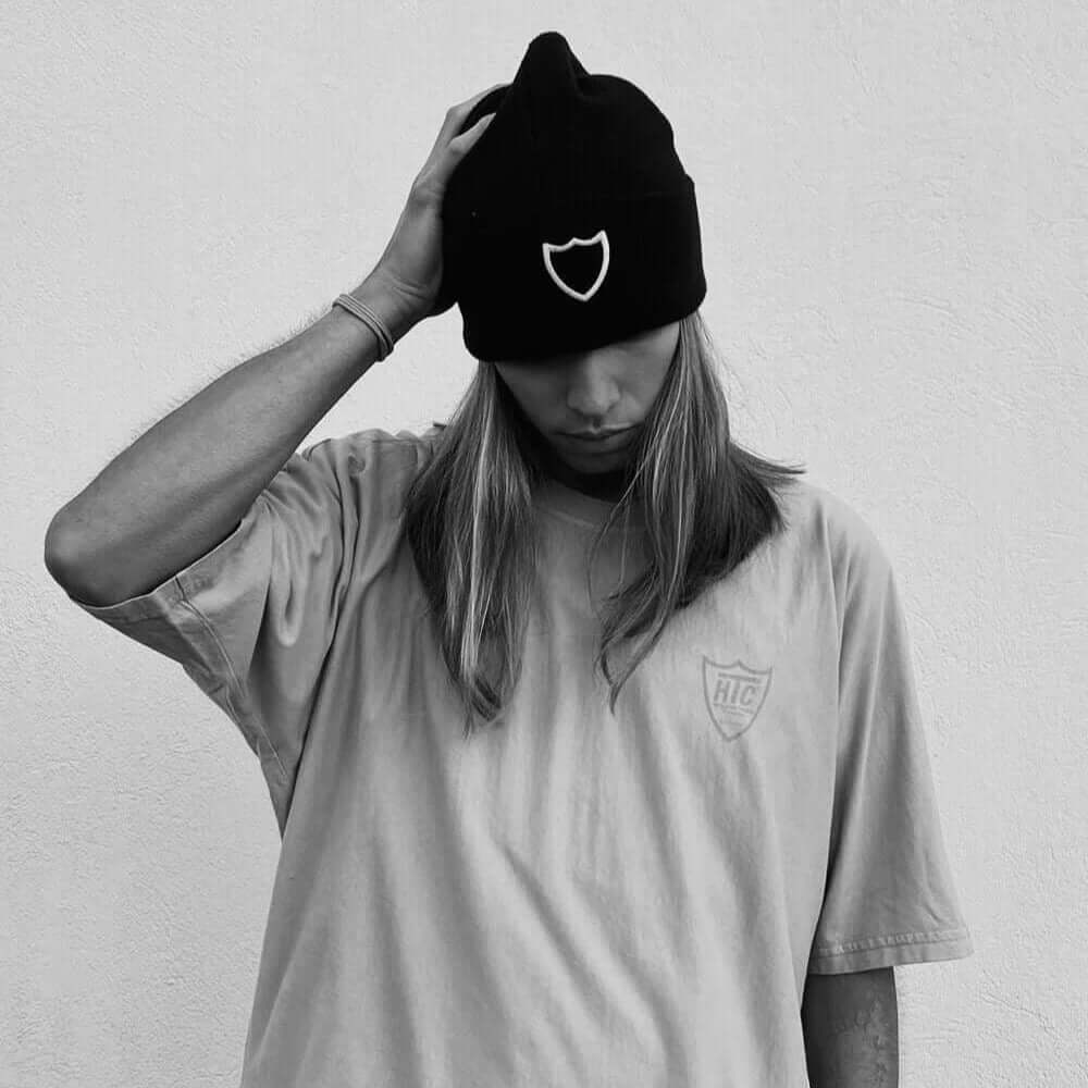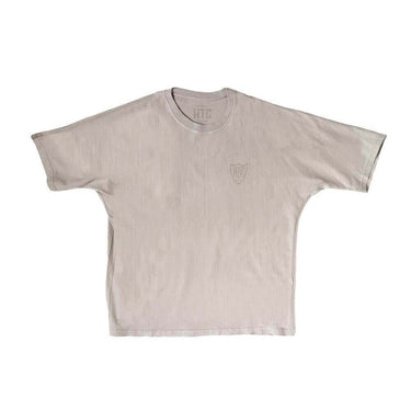 Beige t-shirt with a Japanese fit and a small front logo print.