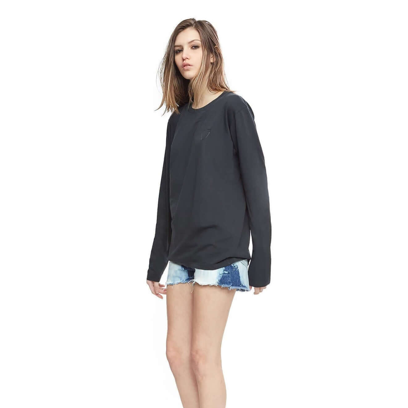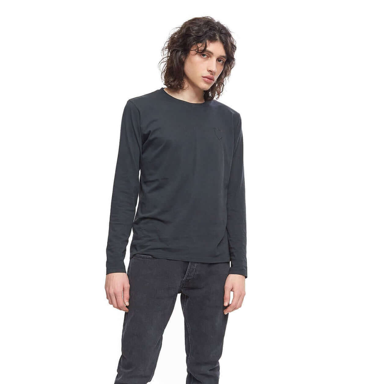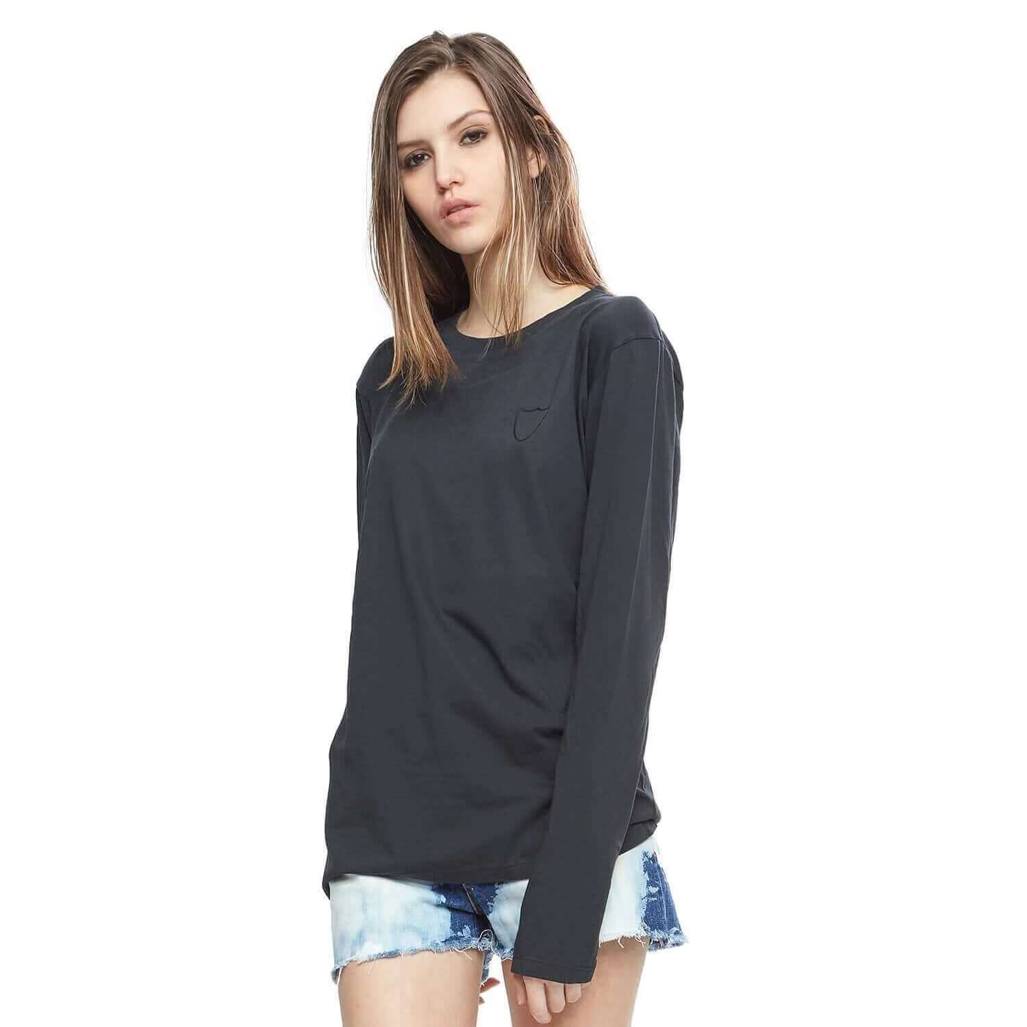 Black long-sleeves t-shirt with black HTC Los Angeles shield logo printed on the front. 100% cotton. Made in Italy