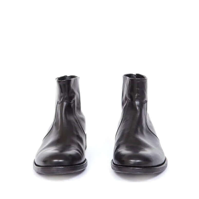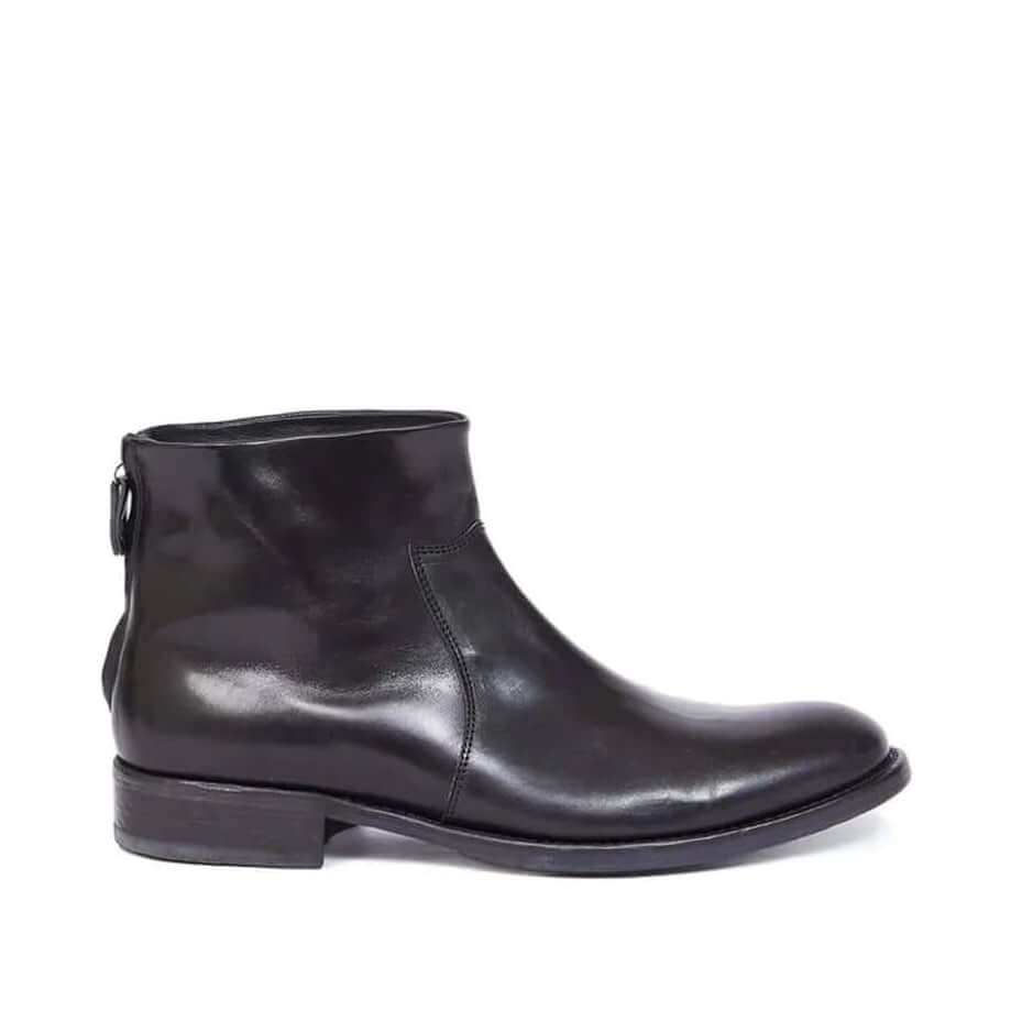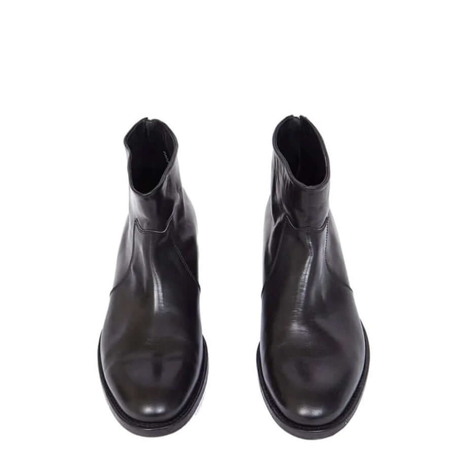 Black leather boots, leather sole, side zip closure. made in Italy.