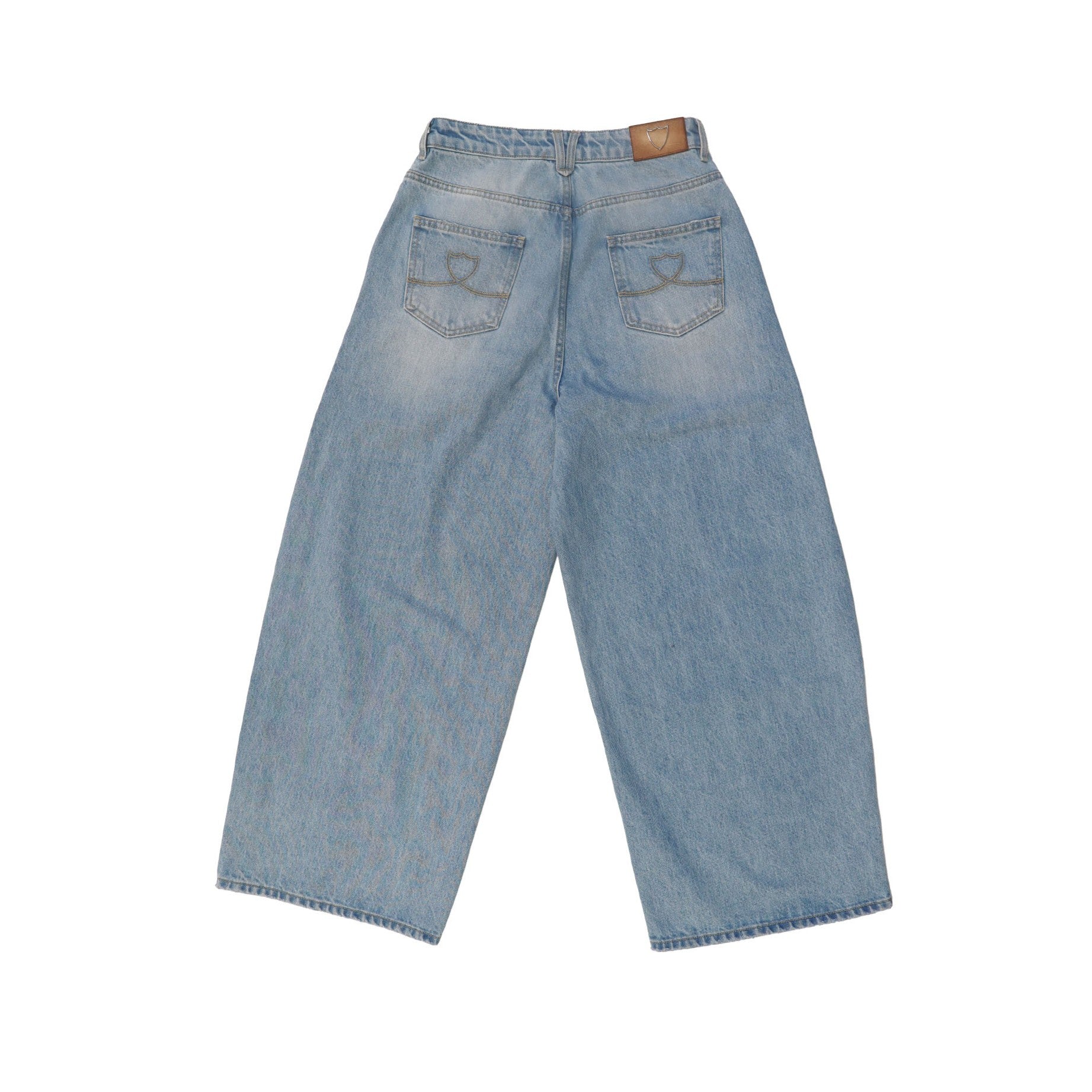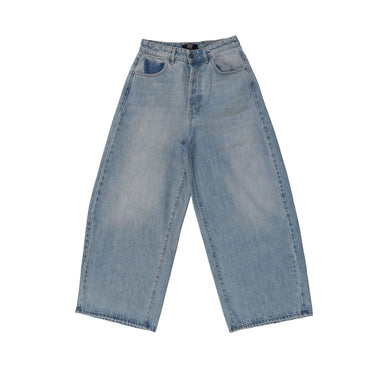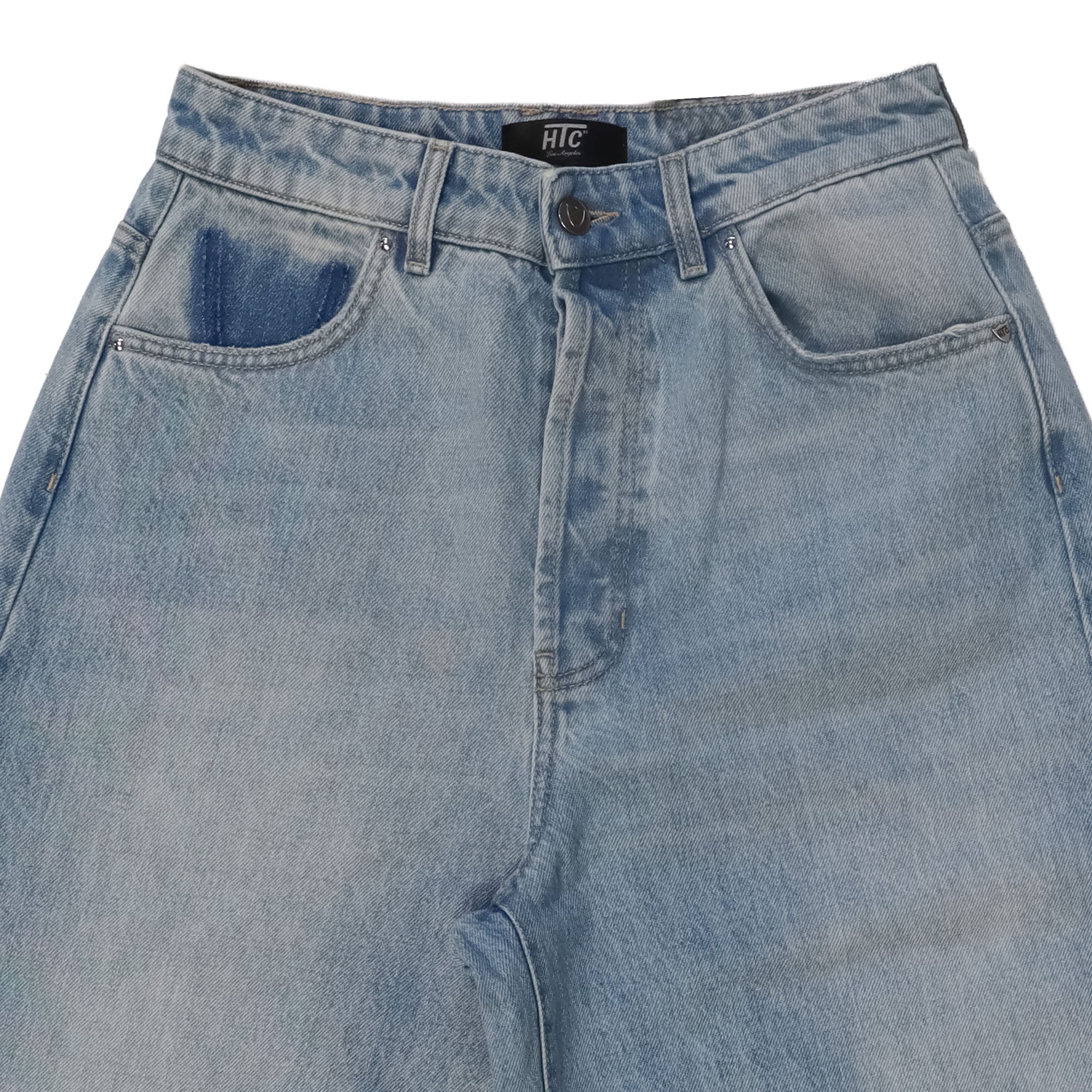 Light Blue denim Baggy Jeans for women with button closure and HTC logo detail on the back.