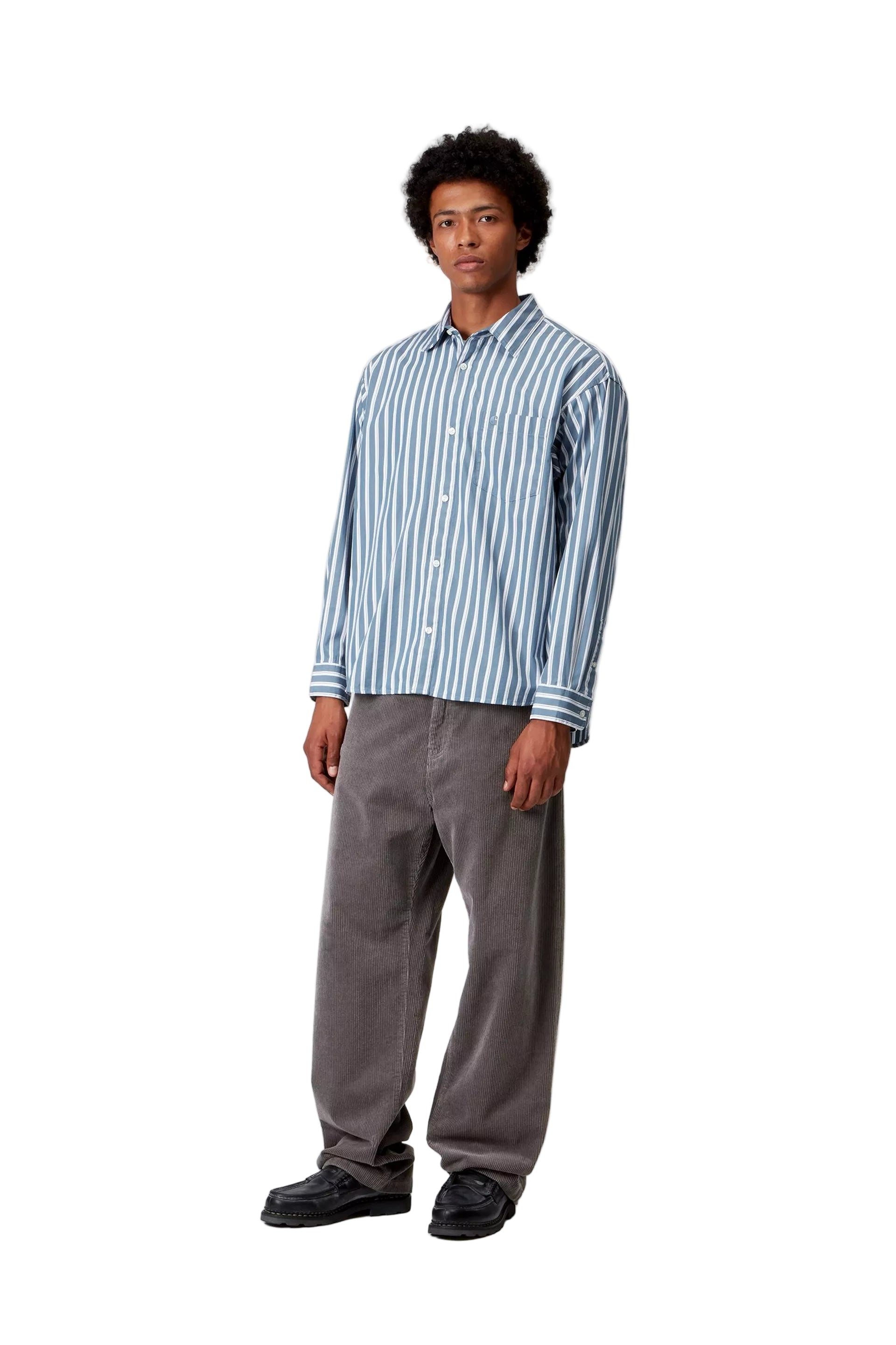 I Landon Pant sono realizzati in velluto Coventry a otto coste, un tessuto di cotone di medio peso caratterizzato da righe spesse. I pantaloni presentano vita normale e gamba comoda ma affusolata, pertanto la parte superiore della gamba è più ampia e diventa affusolata sotto il ginocchio. Il modello a cinque tasche è impreziosito da un’etichetta quadrata sulla parte posteriore.