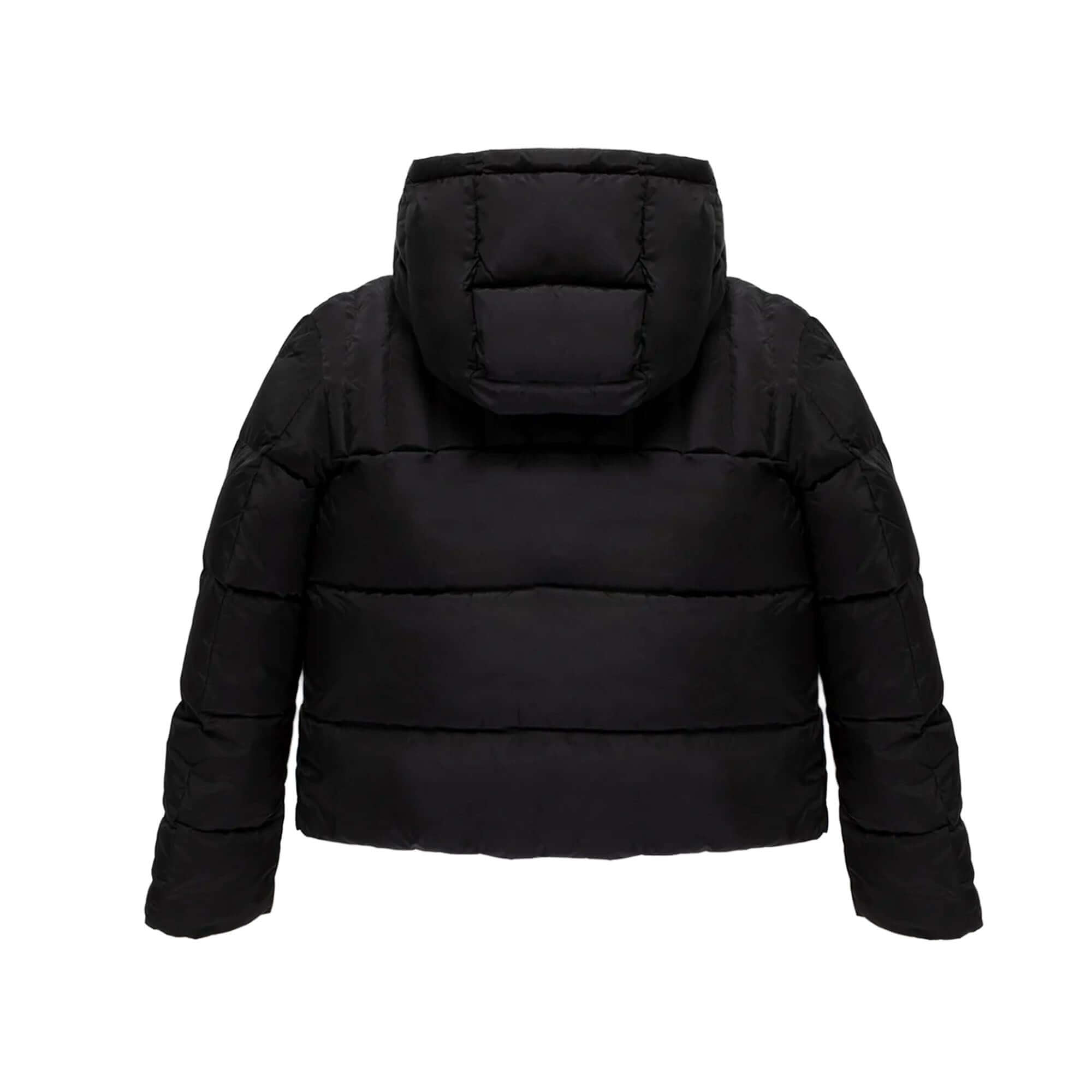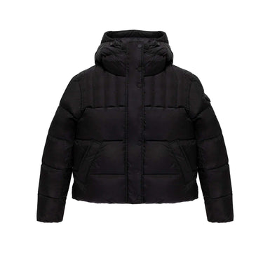 Piumino corto da donna con cappuccio dal taglio cropped, pensato per chi desidera un look deciso e contemporaneo. La parte superiore del busto è caratterizzata da una trapuntatura verticale, mentre quella inferiore presenta una trapuntatura orizzontale, creando un effetto grafico dinamico e originale. Realizzato in nylon dall’aspetto satinato e morbido al tatto, è dotato di tecnologia Reclosed™, che assicura la perfetta tenuta delle piume nel tempo. Water-resistant e windproof, è imbottito con 100% piuma 90-10 certificata RDS, per garantire calore, leggerezza e rispetto degli standard etic