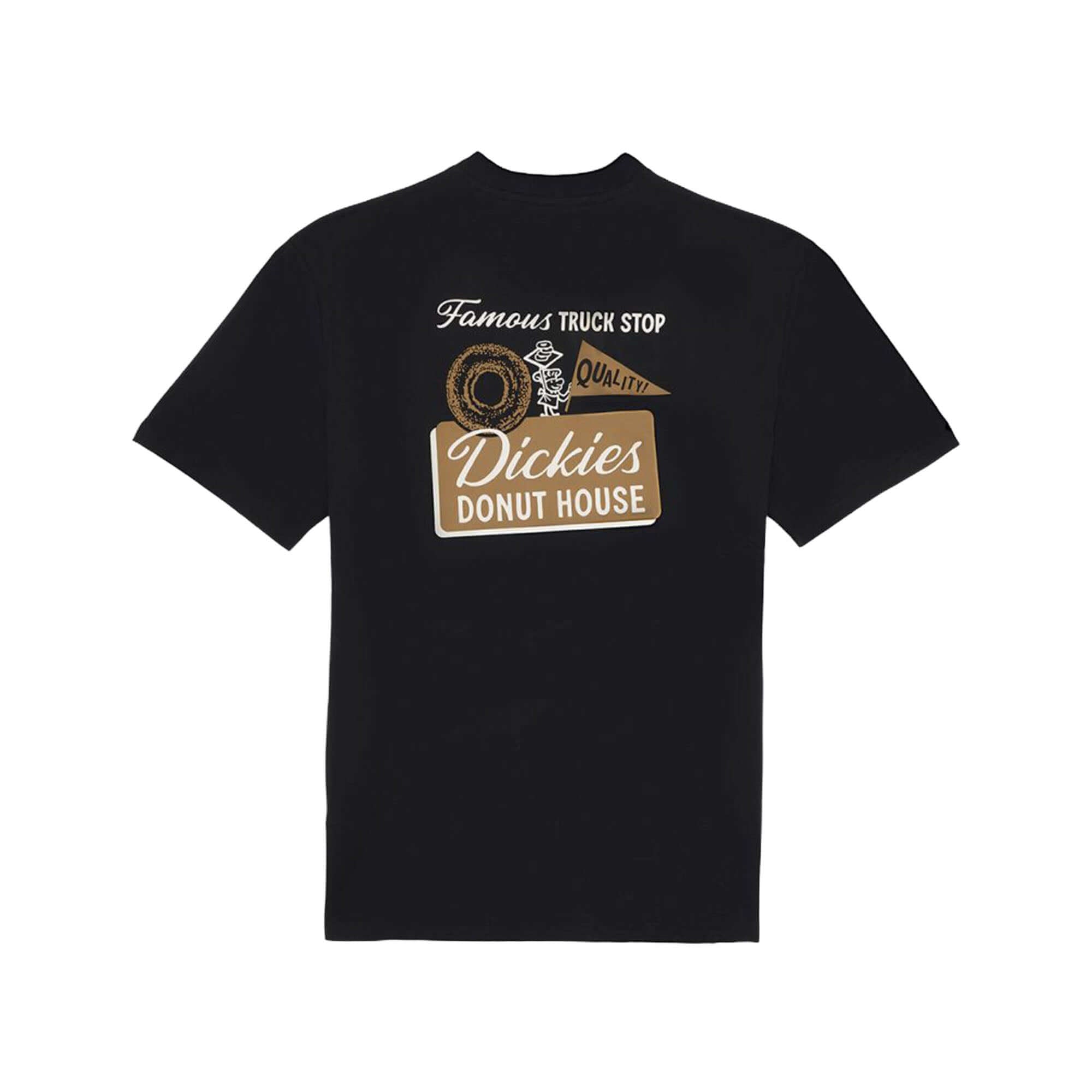 The Donut House short-sleeved T-shirt pays homage to classic workwear garments with a service area-inspired graphic on the front and back. This comfortable graphic tee for everyday wear is complemented by the iconic Dickies label woven into the hem.