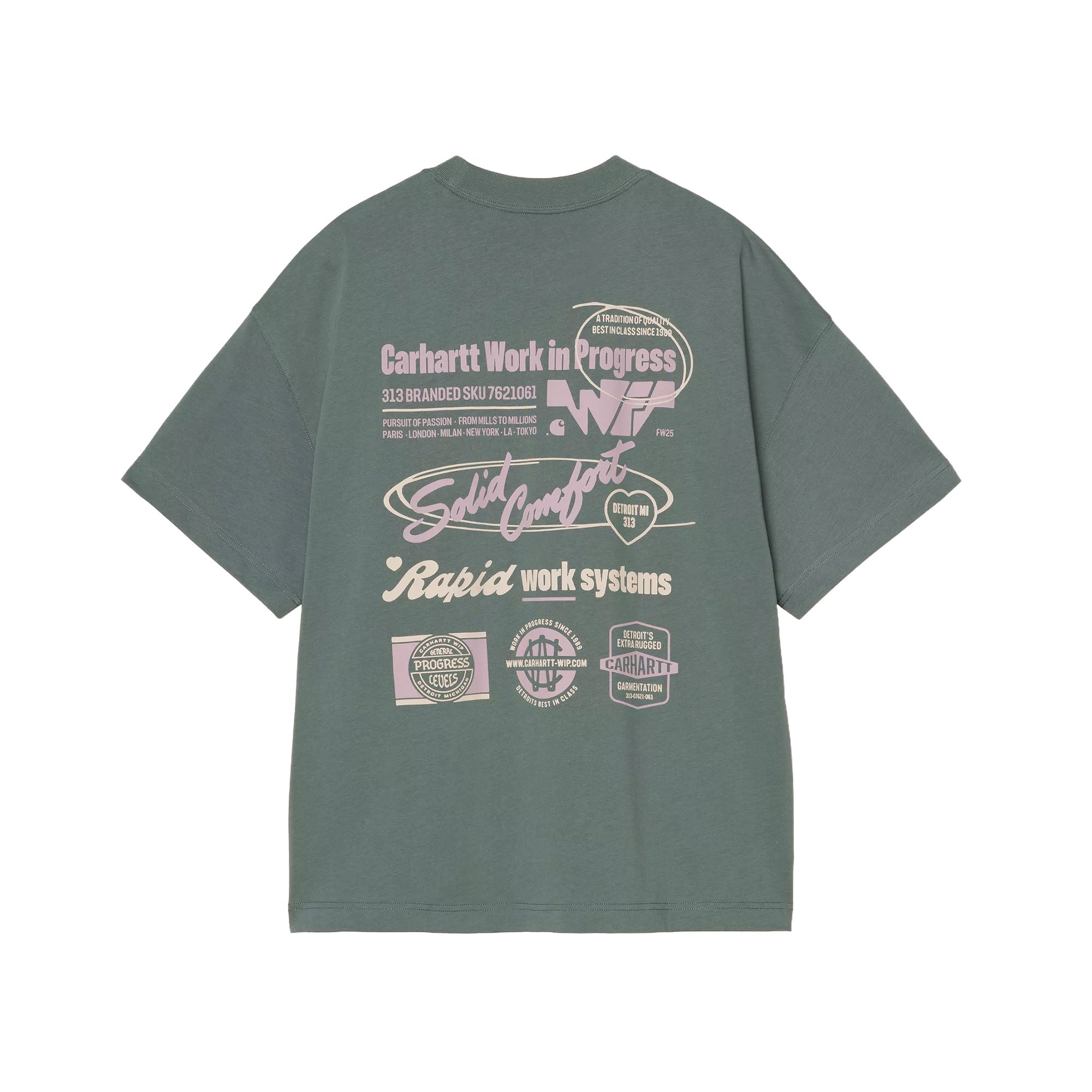 The S/S Work Networks T-Shirt is made of medium-weight organic cotton jersey and features a loose, boxy fit. Front and back camp graphic prints.