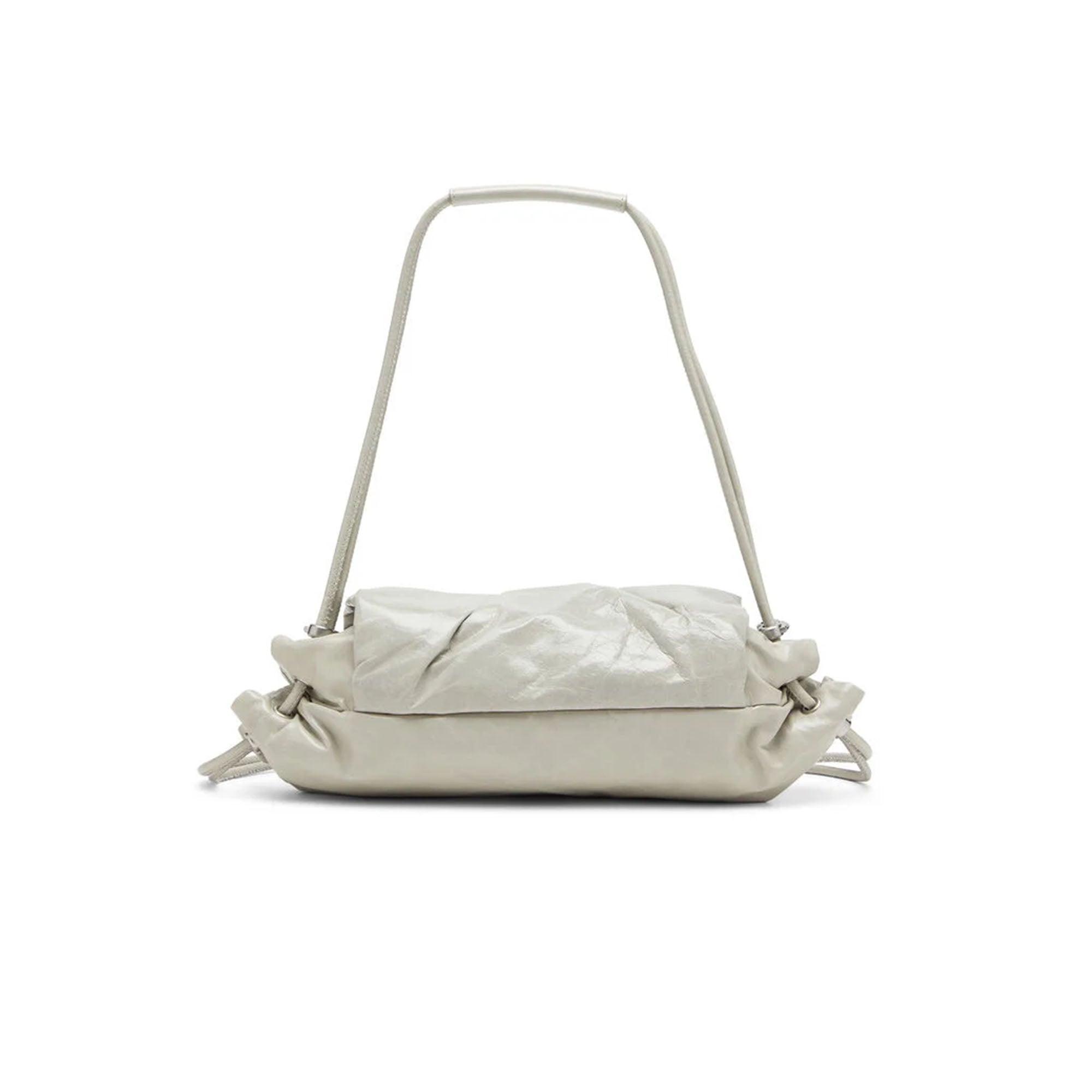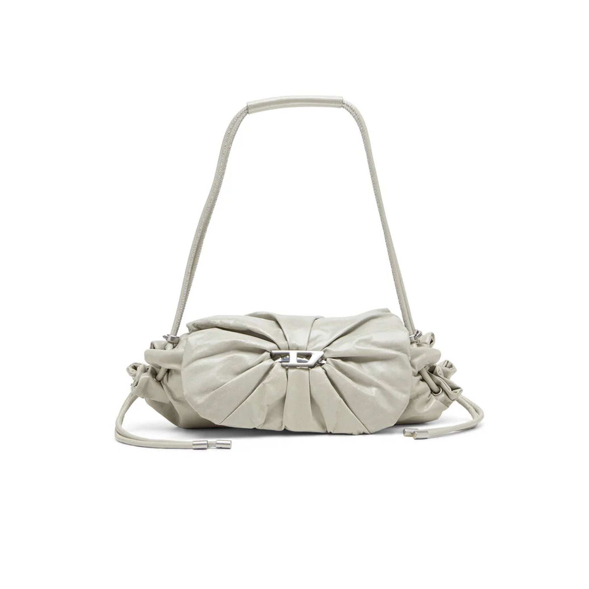 Borsa a spalla da donna realizzata in pelle lucida dalla texture stropicciata, ispirata alle tute sportive. Le arricciature sulla patta aggiungono volume, mentre la placca Oval D con retro a specchio esalta l'effetto tridimensionale del logo. Le coulisse regolabili che chiudono la borsa si uniscono sulla parte superiore e possono essere utilizzate anche come manico.