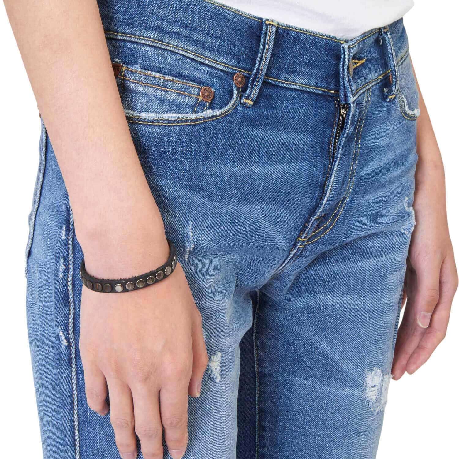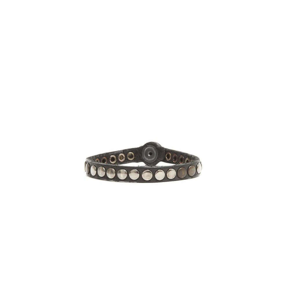 Black leather bracelet with studs, zamac button closure with carved HTC Los Angeles logo. Size M lenght: 20cm; Size S lenght: 19cm. 100% Made in Italy.