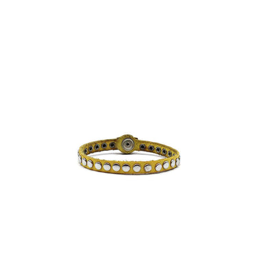 Yellow leather bracelet with studs, zamac button closure with carved HTC Los Angeles logo. 100% Made in Italy.