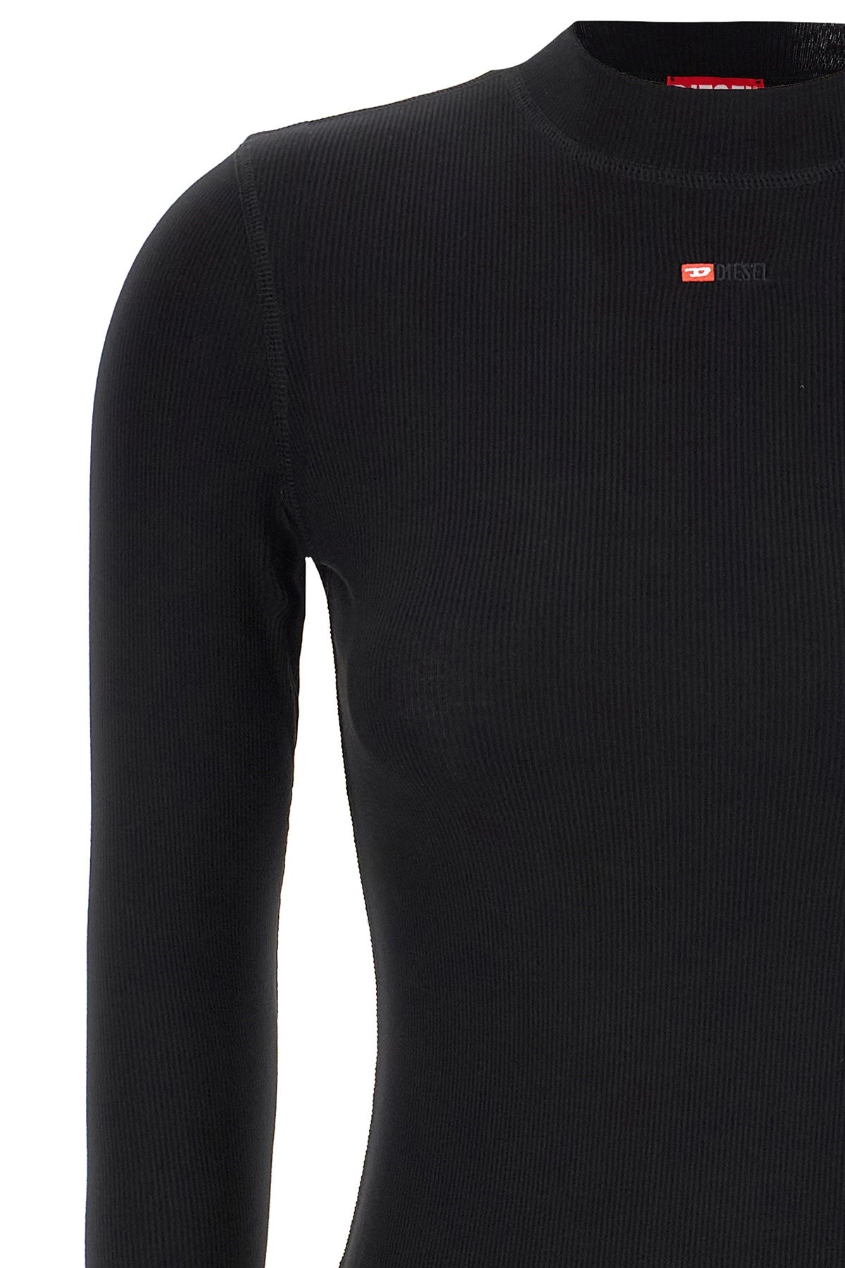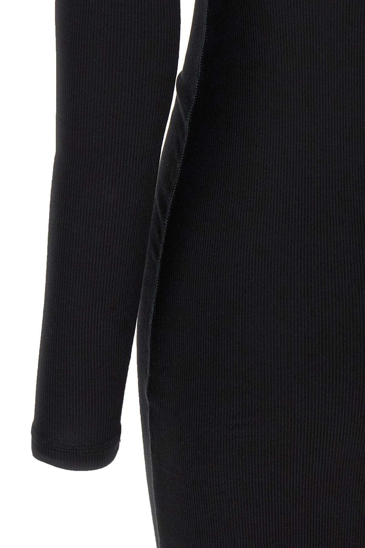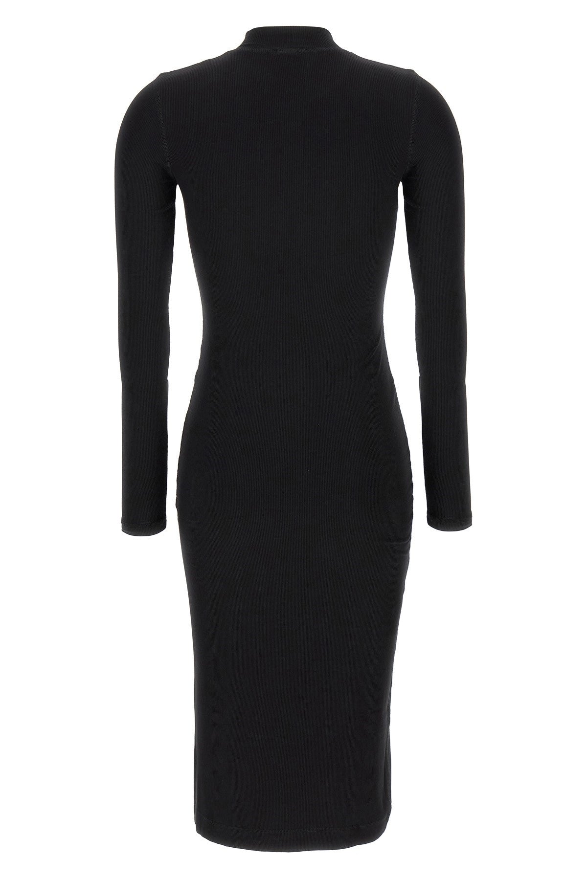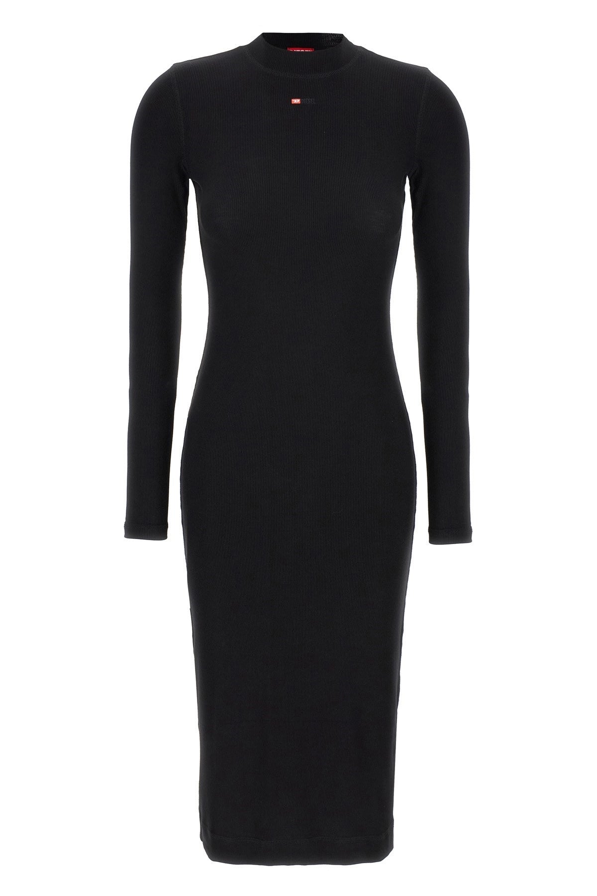 'D-Mokky-Ls-Microdiv' ribbed stretch jersey midi dress with front logo embroidery, high neck, long sleeves, sheath dress.