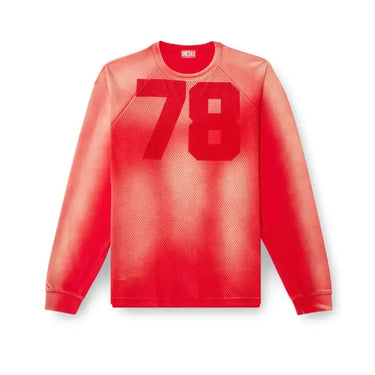 Made entirely of organic cotton, this men's long-sleeved raglan T-shirt has a relaxed fit. Constructed with panels of compact jersey and mesh, the basketball-style silhouette is emblazoned with a maxi logo and the number 78, a tribute to Diesel's founding year, both in shades that are more saturated than the garment's faded appearance.