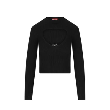 Grintoso e femminile, questo top in lana firmato Diesel gioca con volumi aderenti e dettagli cut-out per un look audace e contemporaneo. Il design cropped con scollatura a oblò frontale è completato dal logo metallico applicato al centro, creando un equilibrio tra comfort termico e stile deciso.