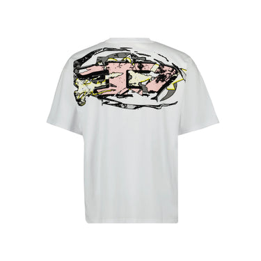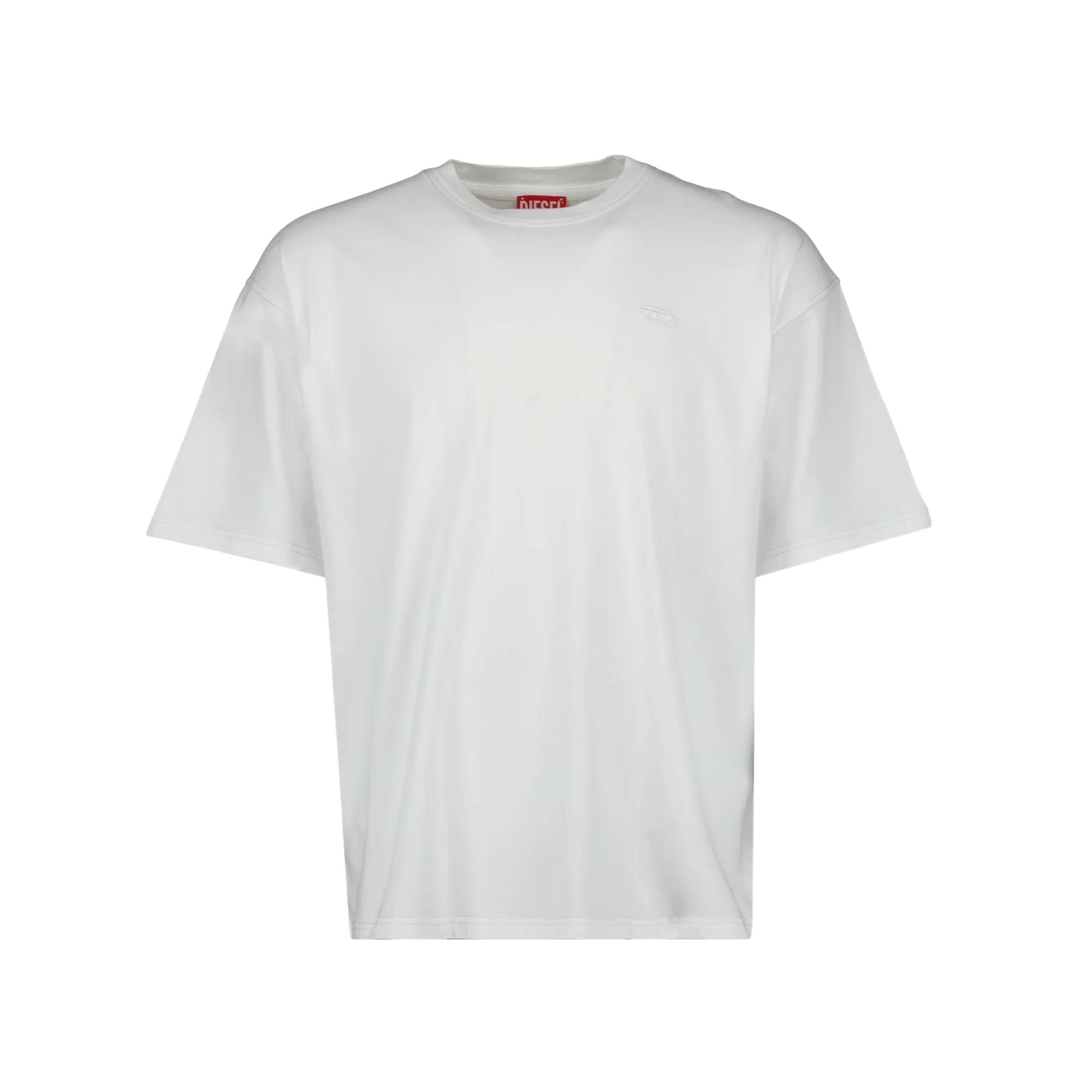 La T-shirt T-Box-T24 bianca di Diesel è un modello da uomo della collezione Autunno-Inverno 2025. Presenta una vestibilità oversize con colletto rotondo e una stampa Oval-D sul retro.