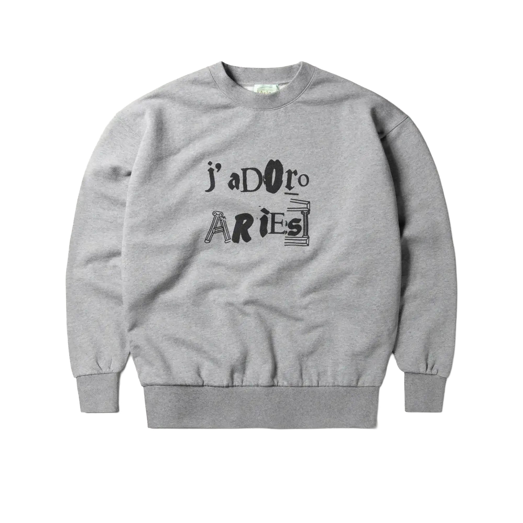 Unisex sweatshirt made of brushed cotton jersey. With J'Adoro Aries Ransom graphic screenprinted on the front.