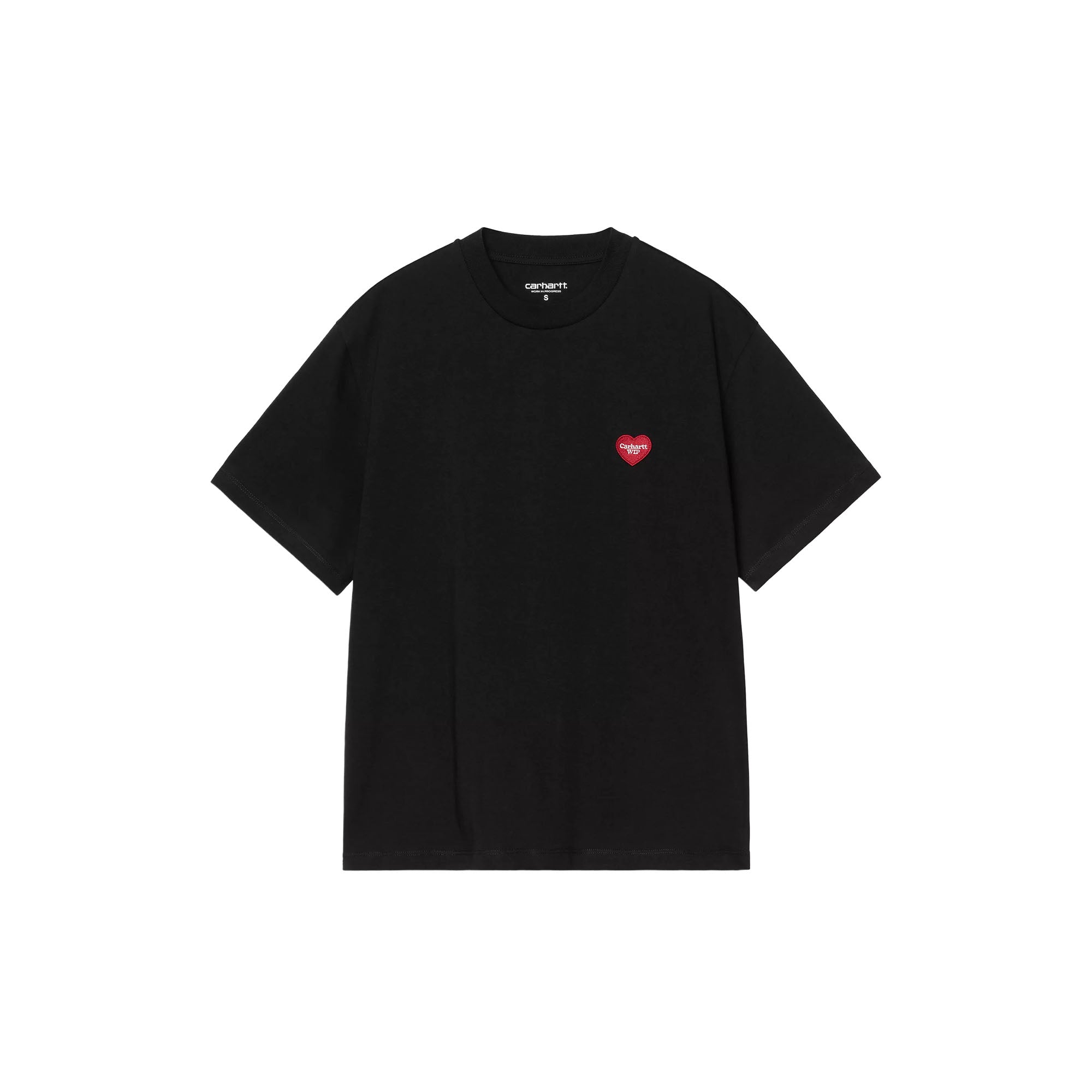 The Women's S/S Heart Patch T-Shirt is made of lightweight organic cotton jersey and features a loose fit. The T-shirt is embellished with an embroidered heart-shaped insert on the chest.