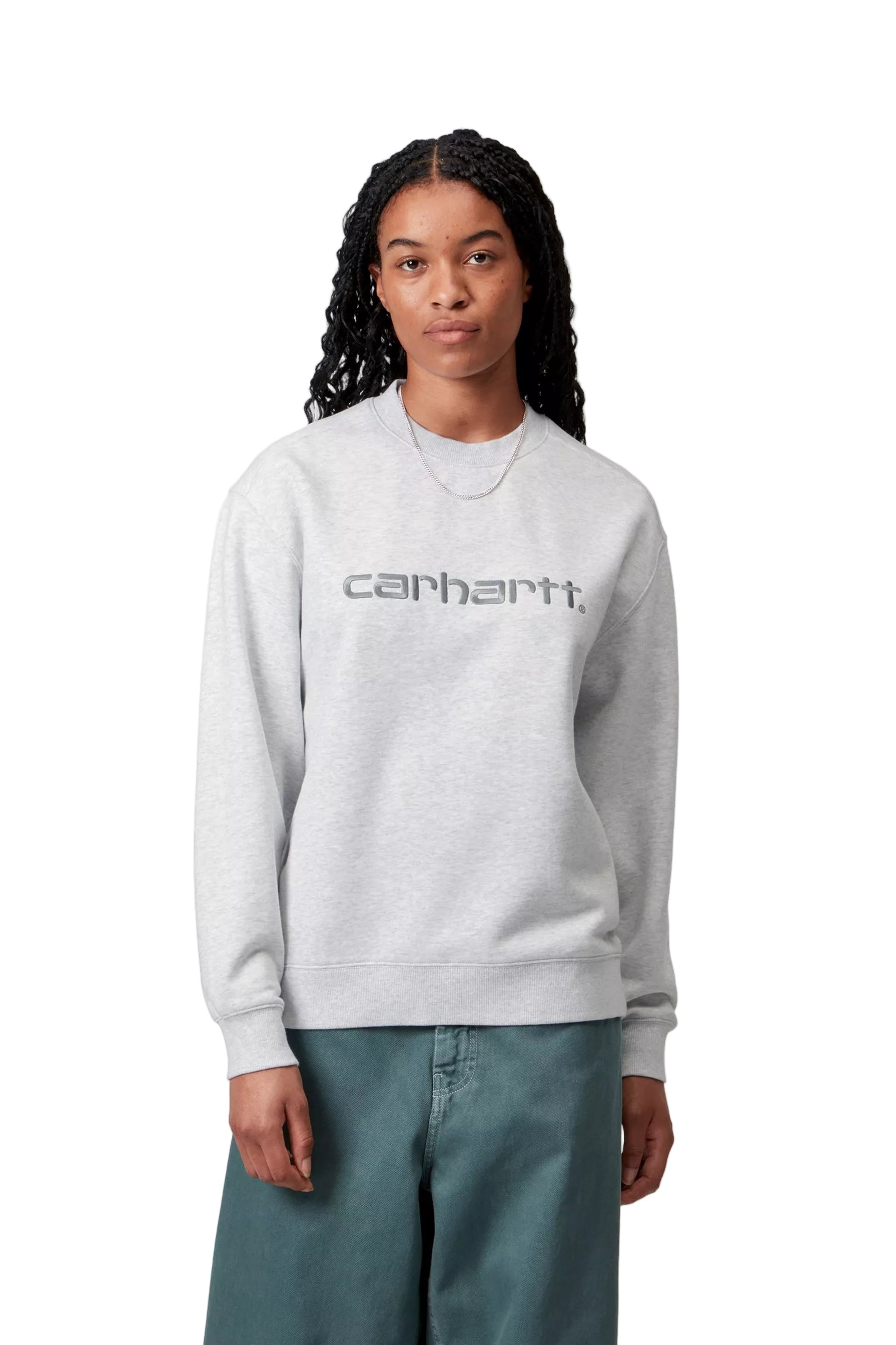 La Women’s Carhartt Sweatshirt è realizzata in pesante jersey di cotone-poliestere spazzolato per un effetto felpato. La felpa è caratterizzata da vestibilità normale. Sul petto campeggia un ricamo del logo.