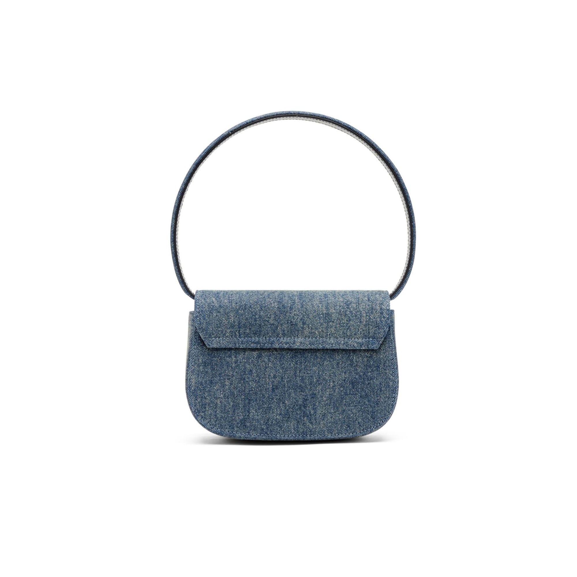 La borsa a tracolla 1DR è diventata l'accessorio Diesel più desiderato. È realizzata in denim blu dal look schiarito dal sole, un effetto ottenuto con uno speciale trattamento solarizzato. La patta è decorata con la distintiva placca Oval D, interpretata con un finish opaco che aggiunge una nota raffinata al design. Può essere indossata a spalla grazie alla maniglia ripiegabile ed è dotata di una tracolla crossbody rimovibile.