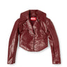 Una sovversione del tailoring, questa giacca da donna è realizzata in morbido tessuto coated con texture martellata e finish lucido. Gli ampi revers a freccia e l’orlo curvo in stile camicia definiscono la silhouette aderente, rifinita da una leggera imbottitura trapuntata. Il capo si chiude con bottoni a pressione nascosti ed è decorato dal logo Oval D goffrato sulla manica.