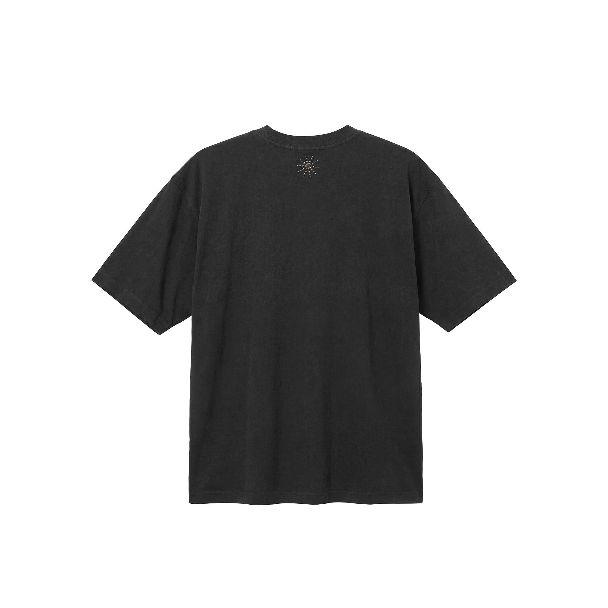 Black oversize fit t-shirt, featuring a tonal "HTC" block letters print on the chest and a small studded sun on the back. Crafted in Italy, 100% cotton.