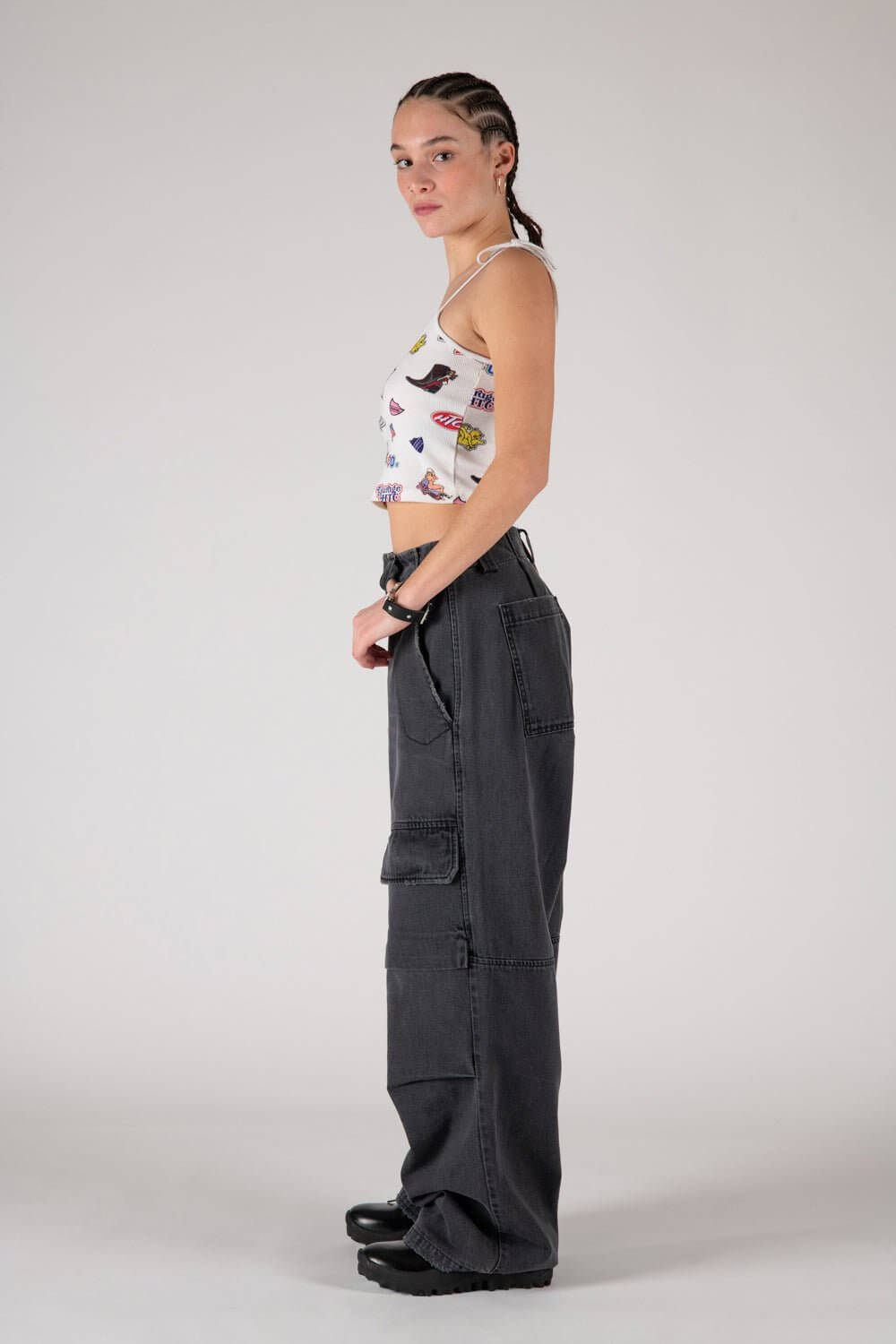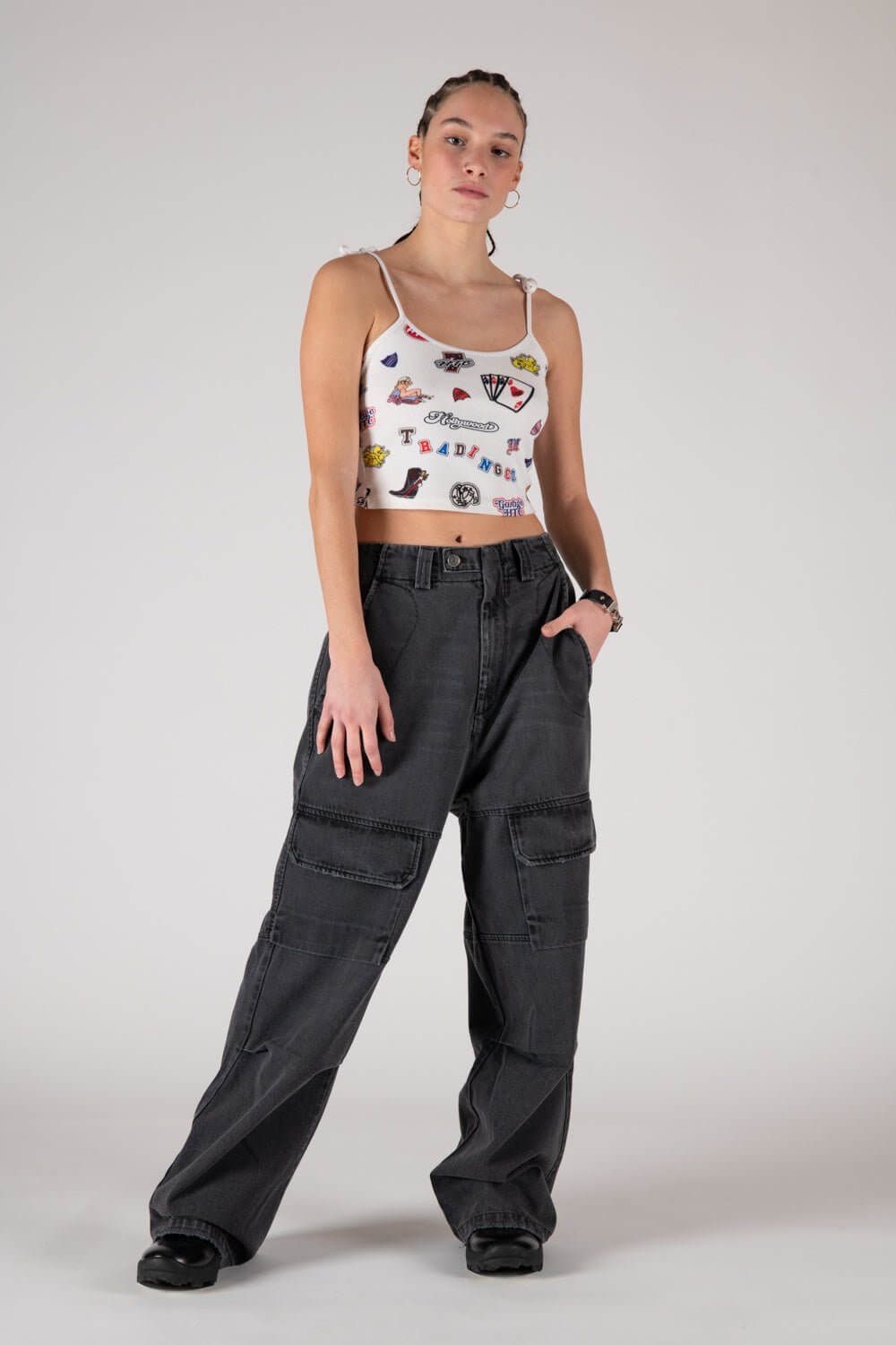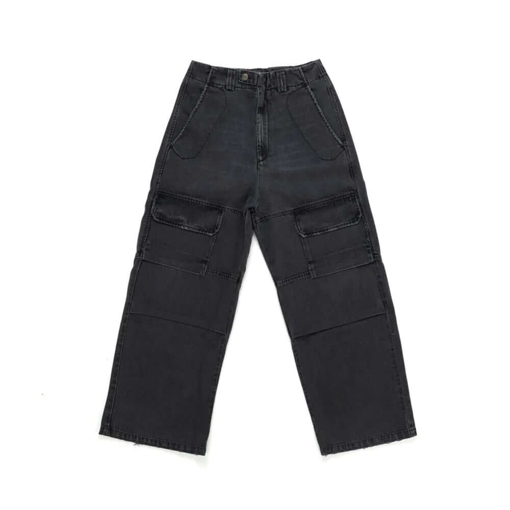 Cargo jeans with front button and zip closure. Frontal pockets. Back leather logo patch. Stonewashed coloring may vary. Five pockets. Composition: 100% Cotton